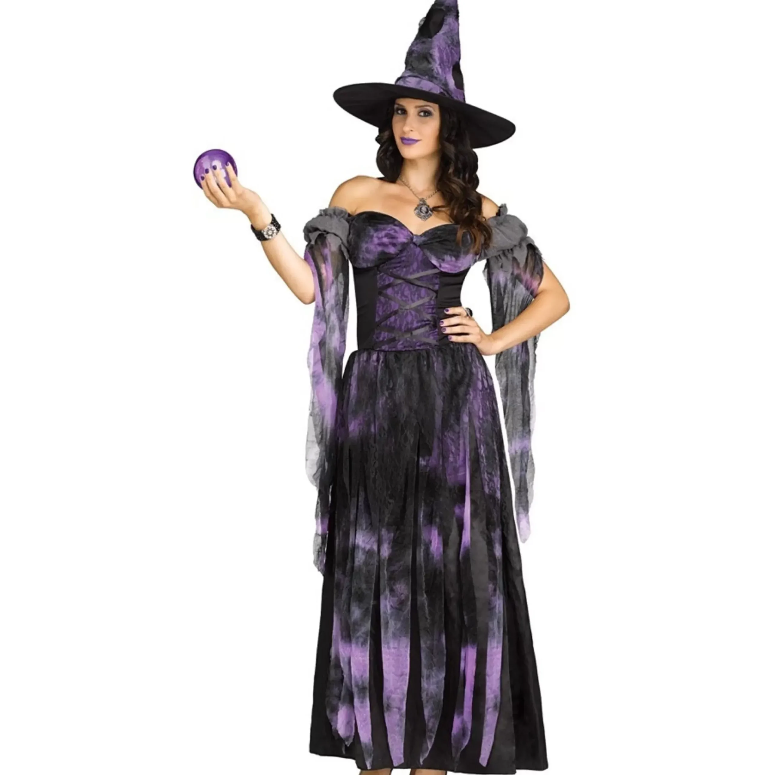 If You Want To Scare People On Halloween, You Absolutely Need To Have The Witch Ladies Costume Deluxe. The Long Gown, Which Was Elegantly Designed In Black And Purple, Matched The Witchy Cap Perfectly.