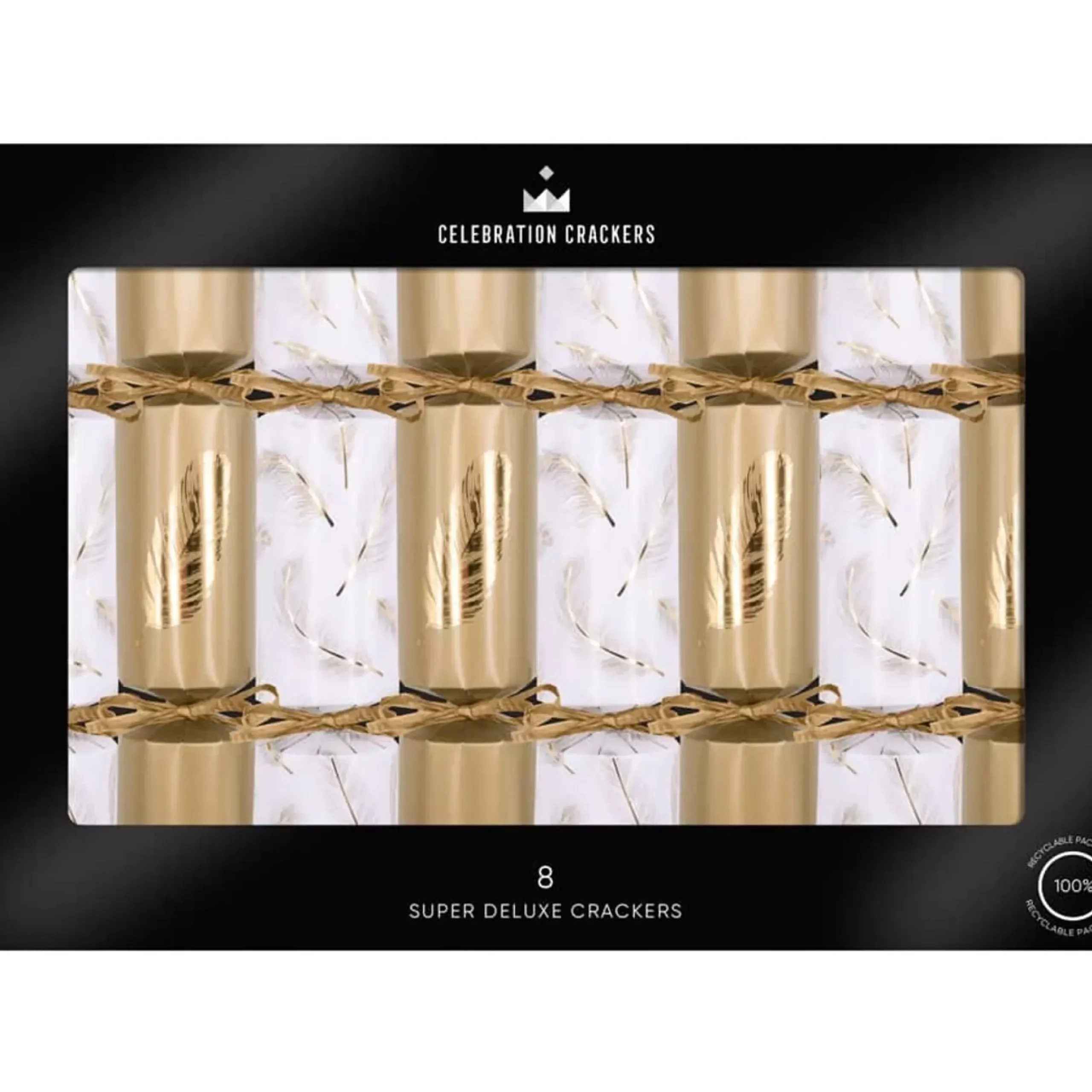 Gold Feather Deluxe Christmas Crackers (Pack Of 8)
