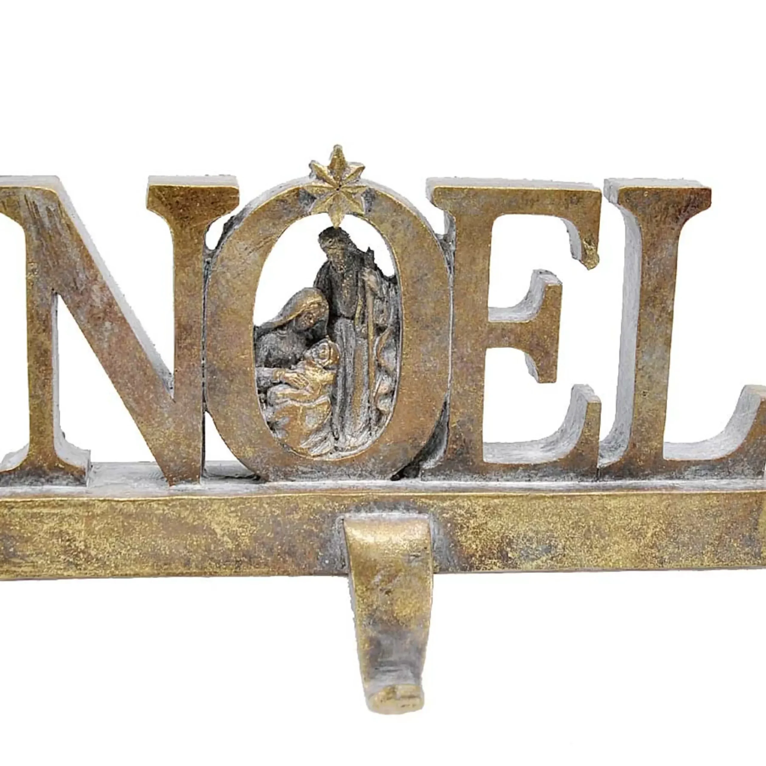 Gold Nativity Stocking Hanger Noel