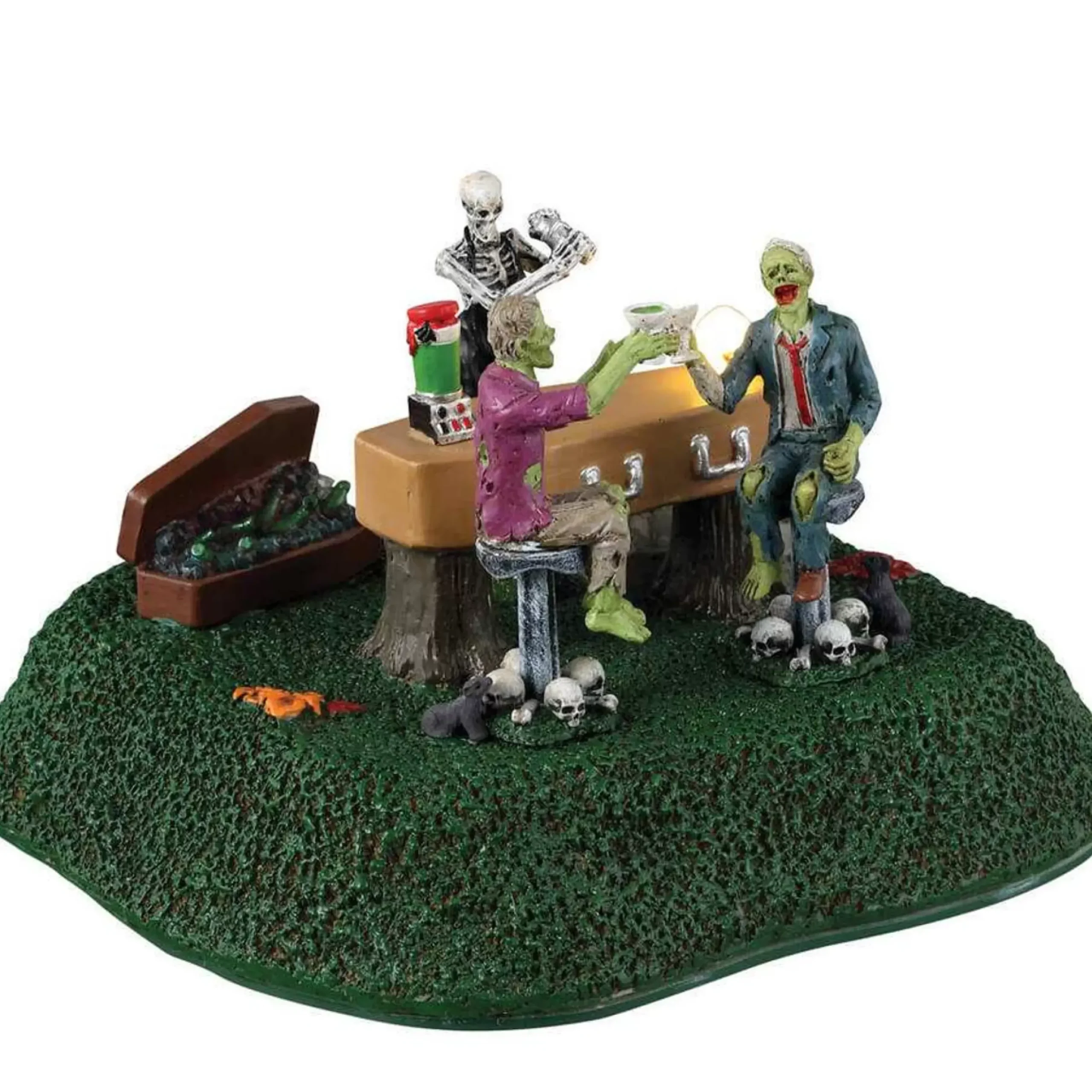 This Astute Barkeep Has Taken Advantage Of The Disturbing Availability Of Coffins And Other Materials In The Area To Create An Alluring Drinking Establishment For His Creepy Clientele. A Coffin Propped Up On Two Stumps Becomes A Makeshift Bar For The Undead As They Watch The Mixologist Whip Up A Drink. Rats Scurry About For Any Crumbs That Might Fall From The Skulls That Decorate The Barstools. There Is Always A Supply Of Vile Refreshments In An Open Coffin Ready For Any Passersby.