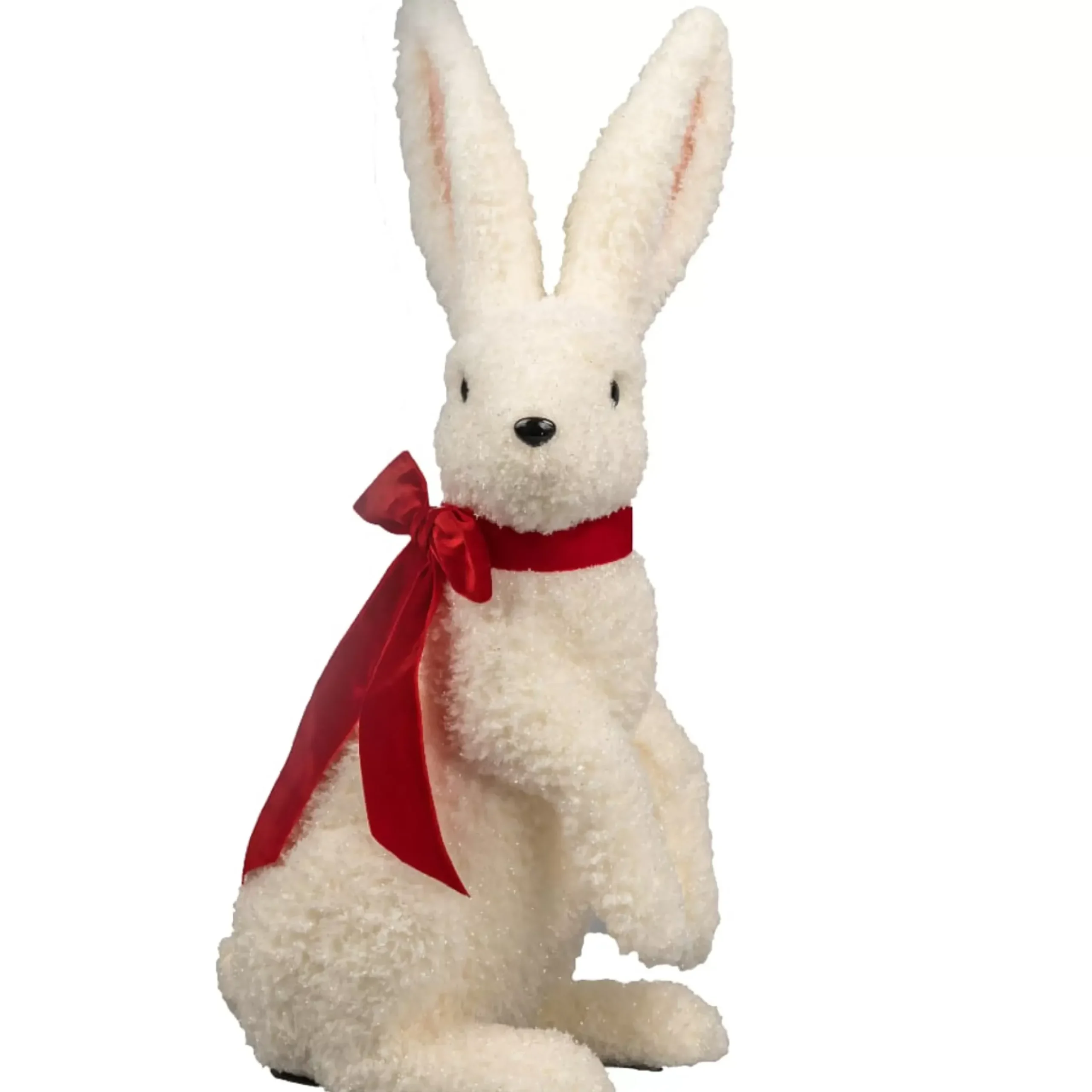 Wearing A Lovely Red Velvet Bow With Long Red Tails, This White Arctic Hare Catches Your Gaze And Shares The Festive Spirit With You.