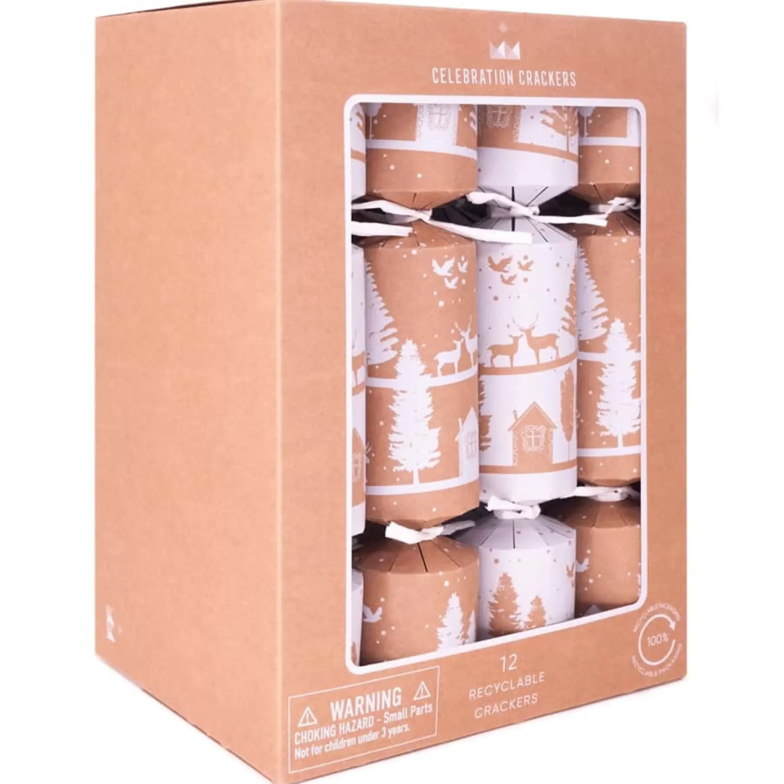 White Natural Deer Christmas Crackers (Pack Of 12)