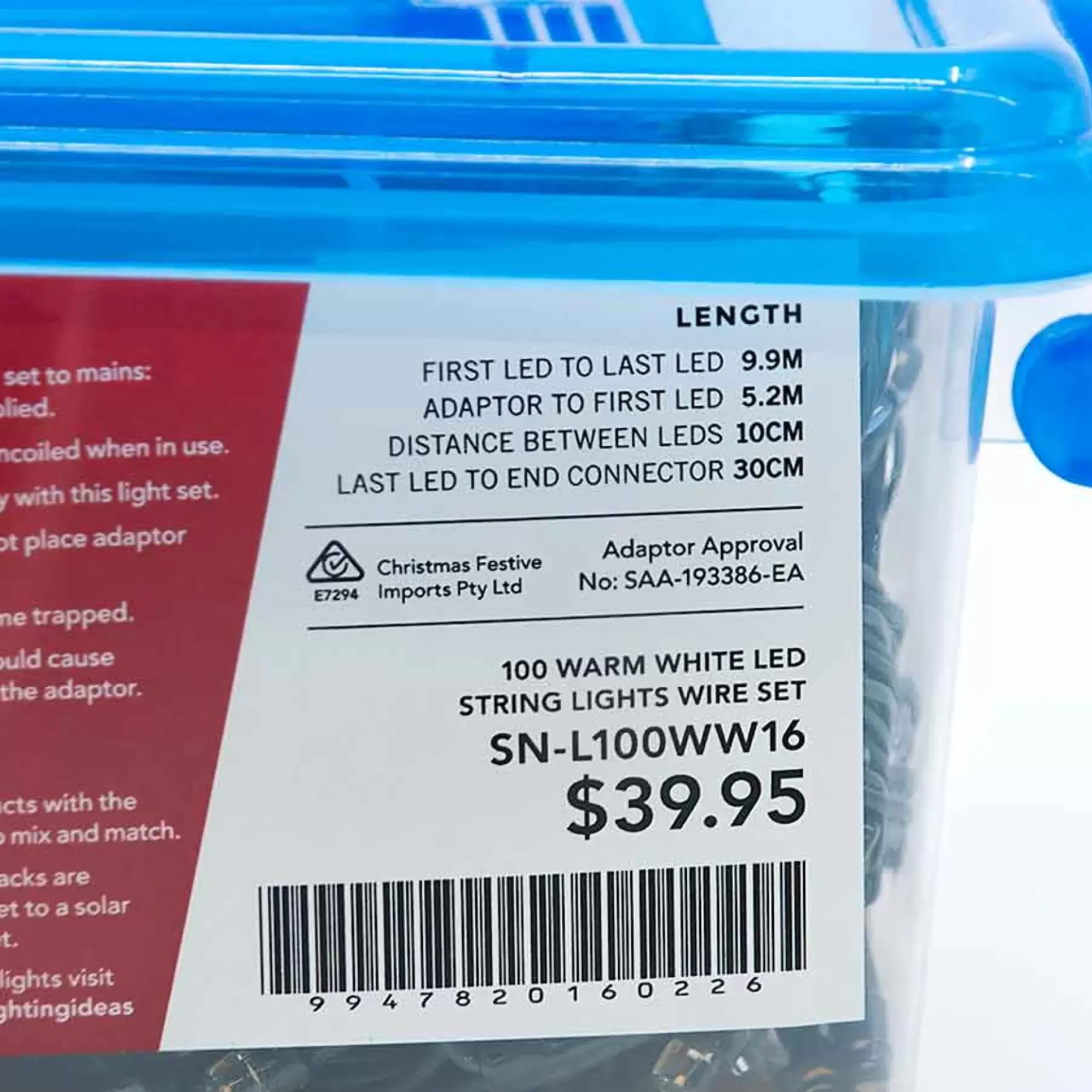 Features:Length From First Led To Last Led: 9.9MLength From Adaptor To First Led: 5.2MIncludes: Power AdapterIncludes: Re-Usable Storage TubLed Light Colour: Warm WhiteWire Colour: Green This Fairy Light Set Can Be Extended Using Any Of The Range Of Products. Each Set Can Be Extended Up To 1200 Led Lights With Power Adapter, Connected Via It’s End To End Connectors. These Lights Can Easily Go Solar With This Solar Panel. Connectable Ready Lights Include A Large Variety Of Colours (Including Rose Gold, Red, White And Multicolour). The Features Include: