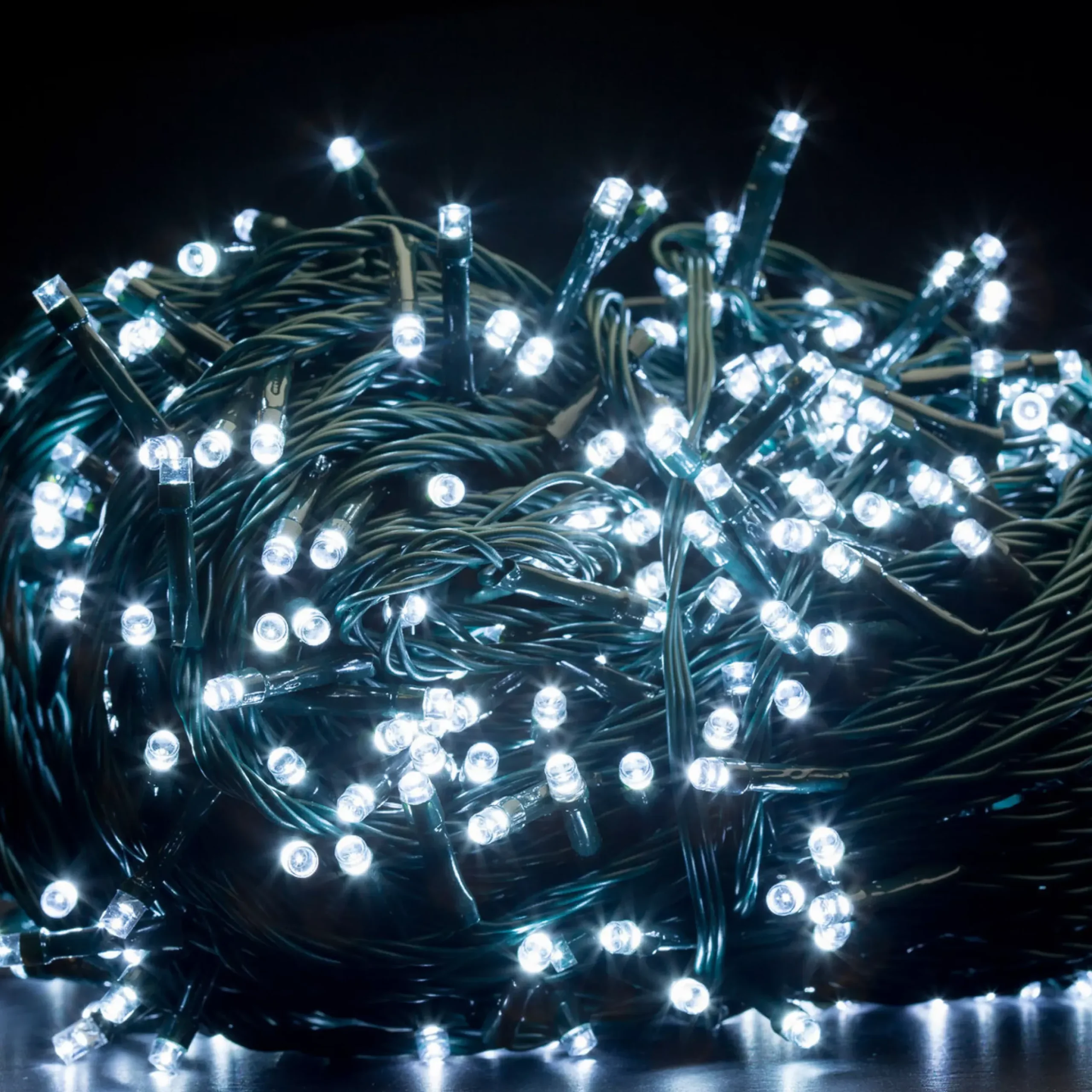 Features:Length From First Led To Last Led: 39.9MLength From Adaptor To First Led: 5.2MIncludes: Power AdapterIncludes: Re-Usable Storage TubLed Light Colour: WhiteWire Colour: Green This Fairy Light Set Can Be Extended Using Any Of The Range Of Products. Each Set Can Be Extended Up To 1200 Led Lights With Power Adapter, Connected Via It’s End To End Connectors. These Lights Can Easily Go Solar With This Solar Panel. Connectable Ready Lights Include A Large Variety Of Colours (Including Rose Gold, Blue, White And Multicolour). The Features Include: