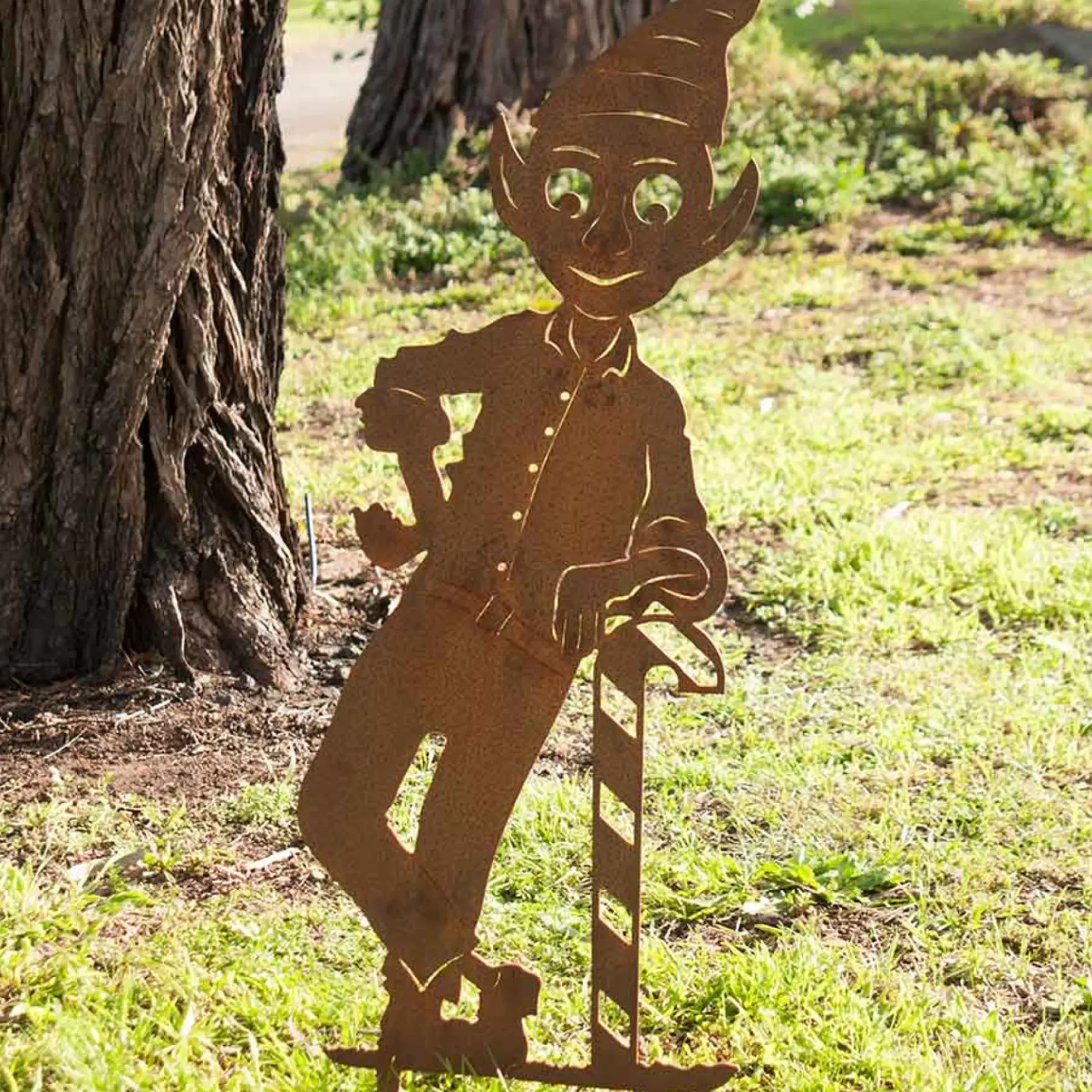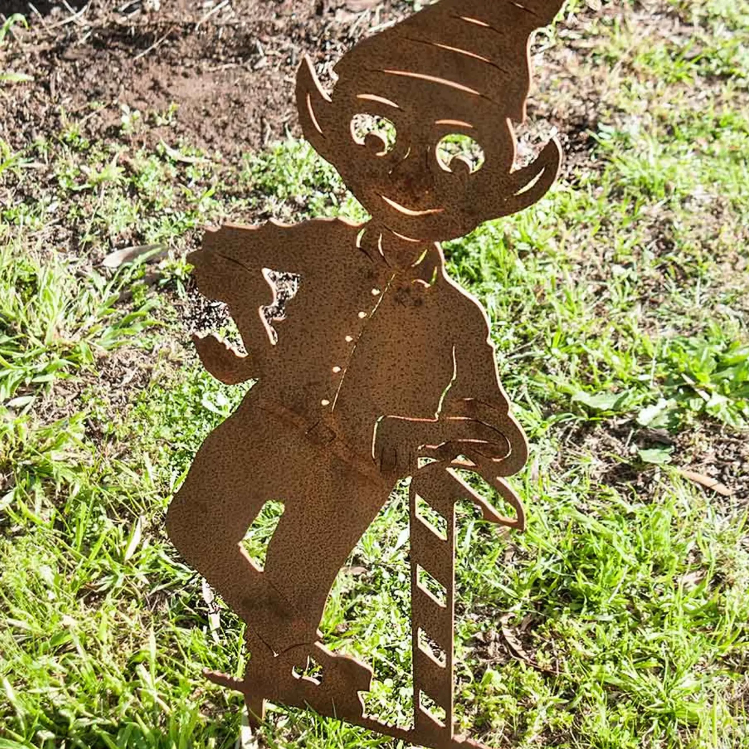 This Piece Of Garden Decor, The Christmas Elf Boy Stake, Is Crafted From Mild Steel And Features A Rustic Patina. The Elf Will Be On Display While He Takes A Sweet Rest In A Sugar Cane. The Perfect Garden Ornament That Will Leave Your Guests Speechless.