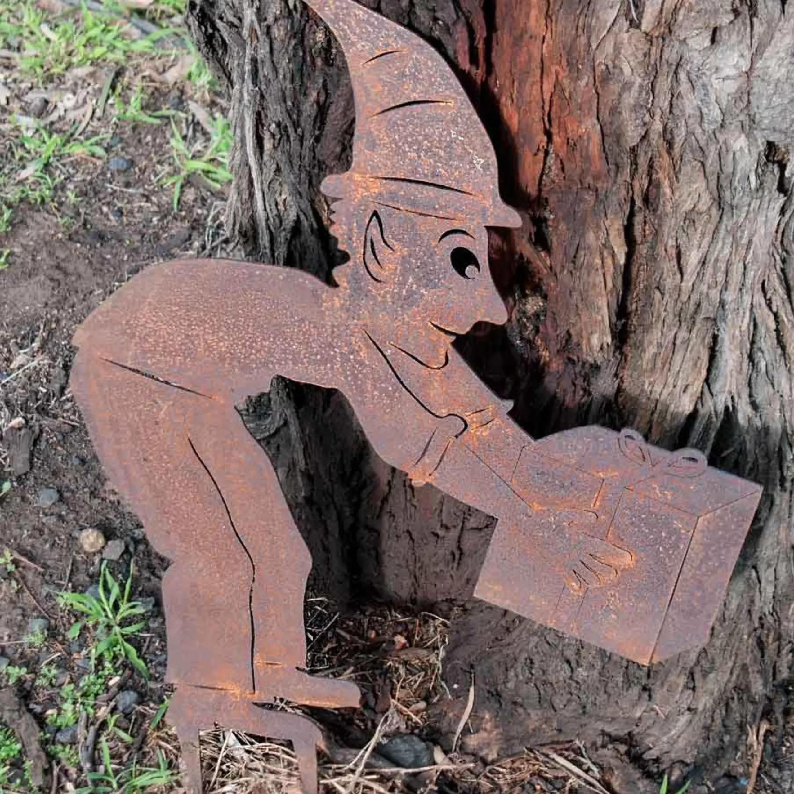 The Christmas Elf Boy With Gift Stake Is Made Of Mild Steel And Has A Rustic Patina, Making It A Charming Addition To Any Outdoor Space. The Elf Will Be On Show When He Offers To His Love Once And Celebrates The Christmas Season With A Present. The One And Only Garden Decoration Guaranteed To Shock And Awe Your Visitors.