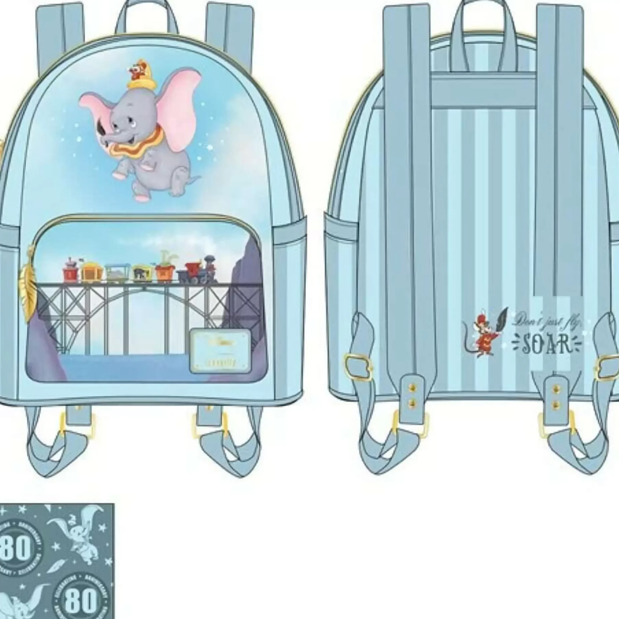 The Body Of This Backpack Is Inspired By Scenes In The Film, With Dumbo, Timothy And The Magic Feather Soaring Up High Above The Circus Train. Immortalised On The Back Are Walt Disney’s Famed Words For The Film; “Don’T Just Fly, Soar” – A Quote That Has Since Become Legendary Throughout Disney Branding And Continues To Resonate Deeply With Fans Today. OUr Loungefly Range Of Products Can Be A Gift To Yourself, Or A Christmas Present, Easter Present, Halloween Present Or Just Because They Are So Cute.