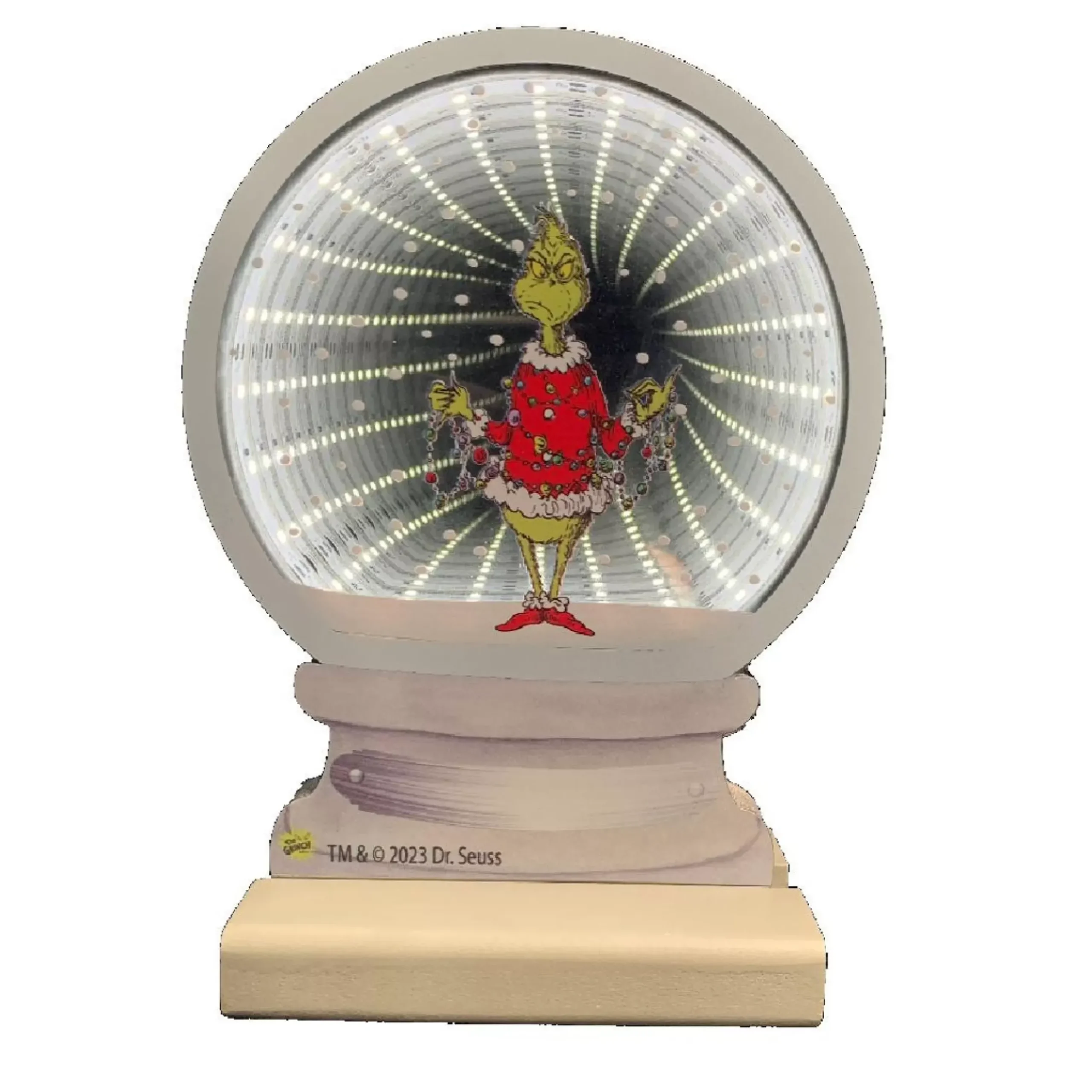 Dr Seuss Grinch With Garland Infinity Light Snow Globe