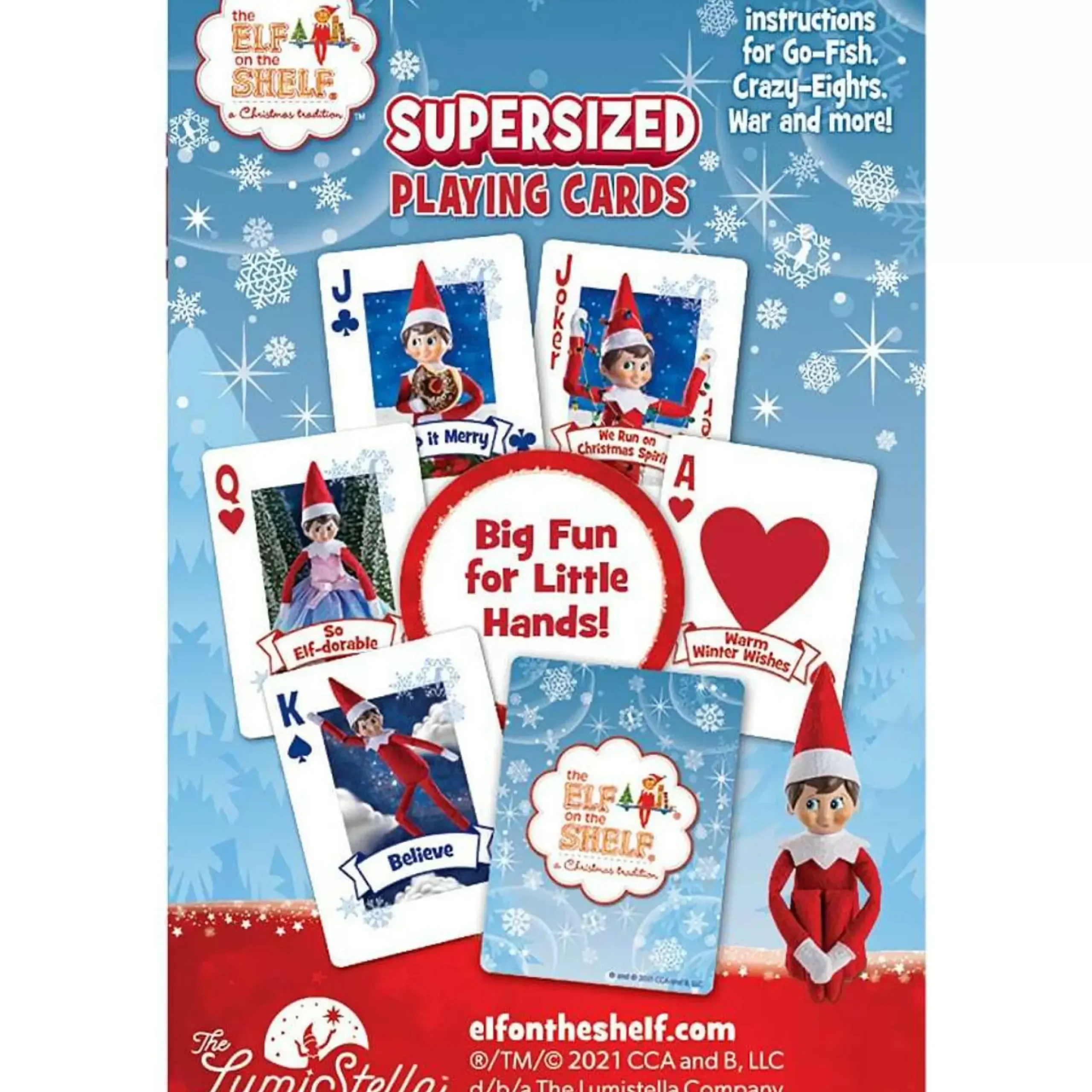 The Elf On The Shelf Supersized Playing Cards By Masterpieces Are The Perfect Deck For Friends And Families To Share In On The Holiday Fun. Each Standard Deck Contains 52 Cards And 2 Jokers. The Bright And Playful Cards Feature Scout Elves From The North Pole. Kids Will Love The Colorful Suits And Funny Phrases.