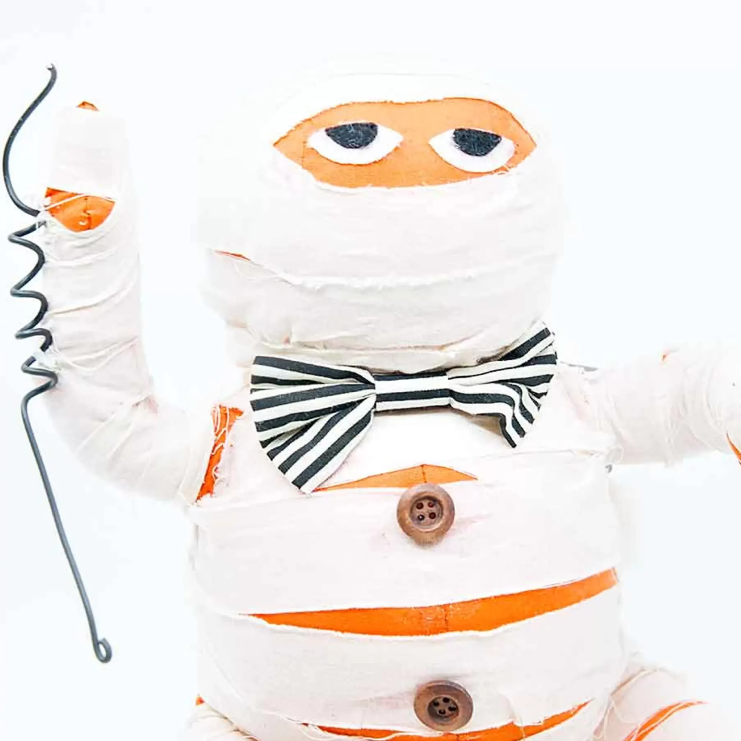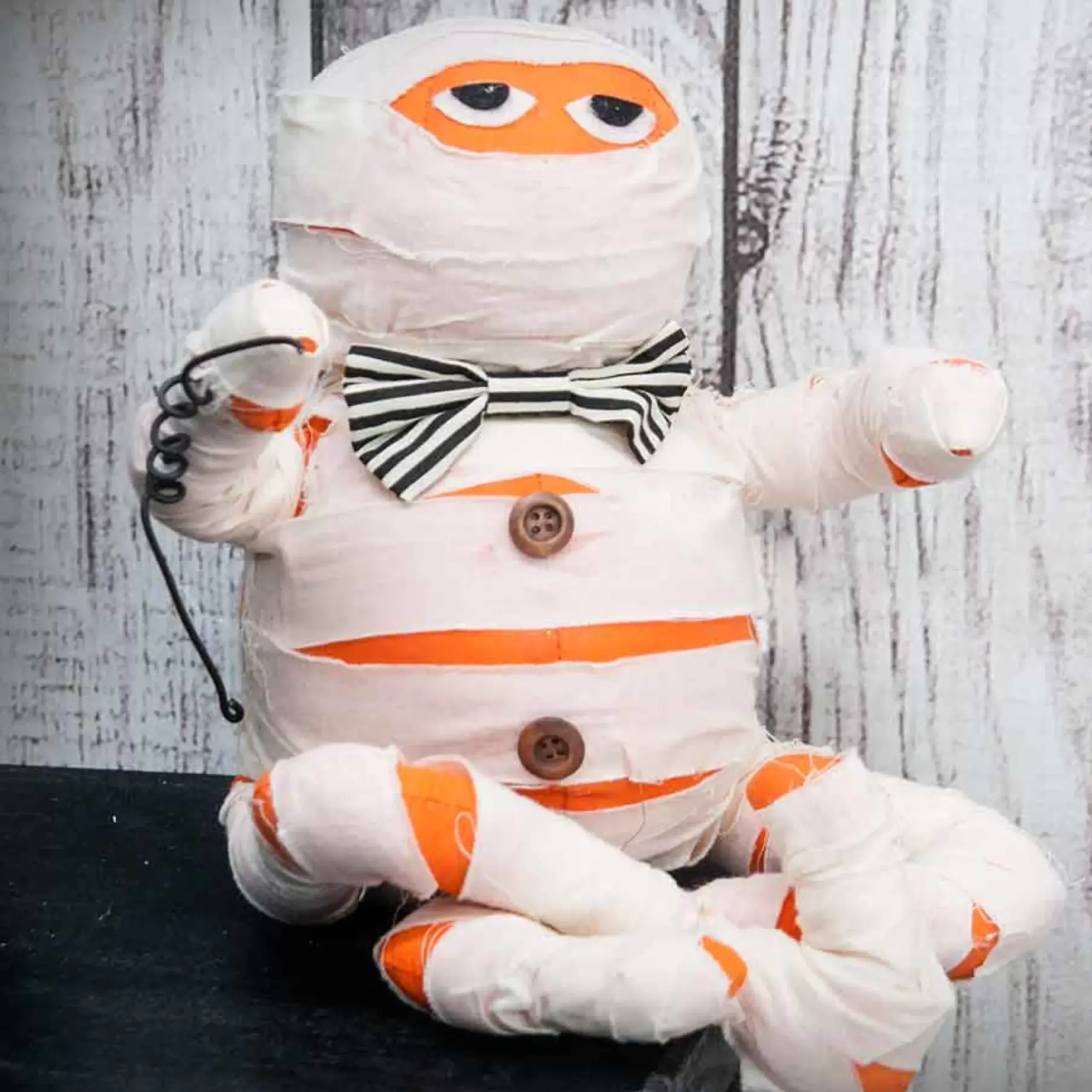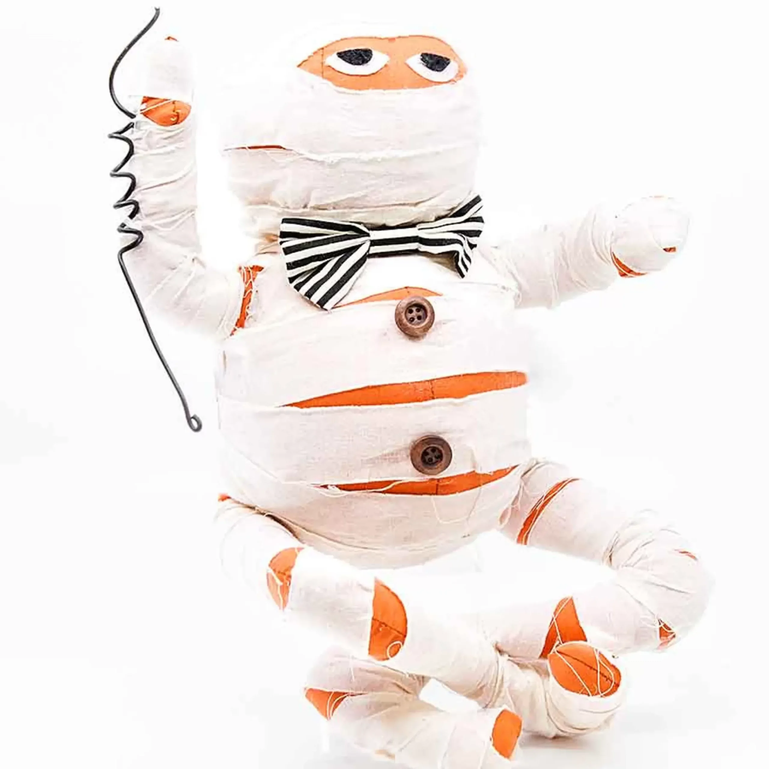 A Ghoulish Mummy With A Kind Soul As He Wears A Adorable Stripe Bow! The Plush Toy’s Body Is Wrapped And Its Eyes Were Sewn On.