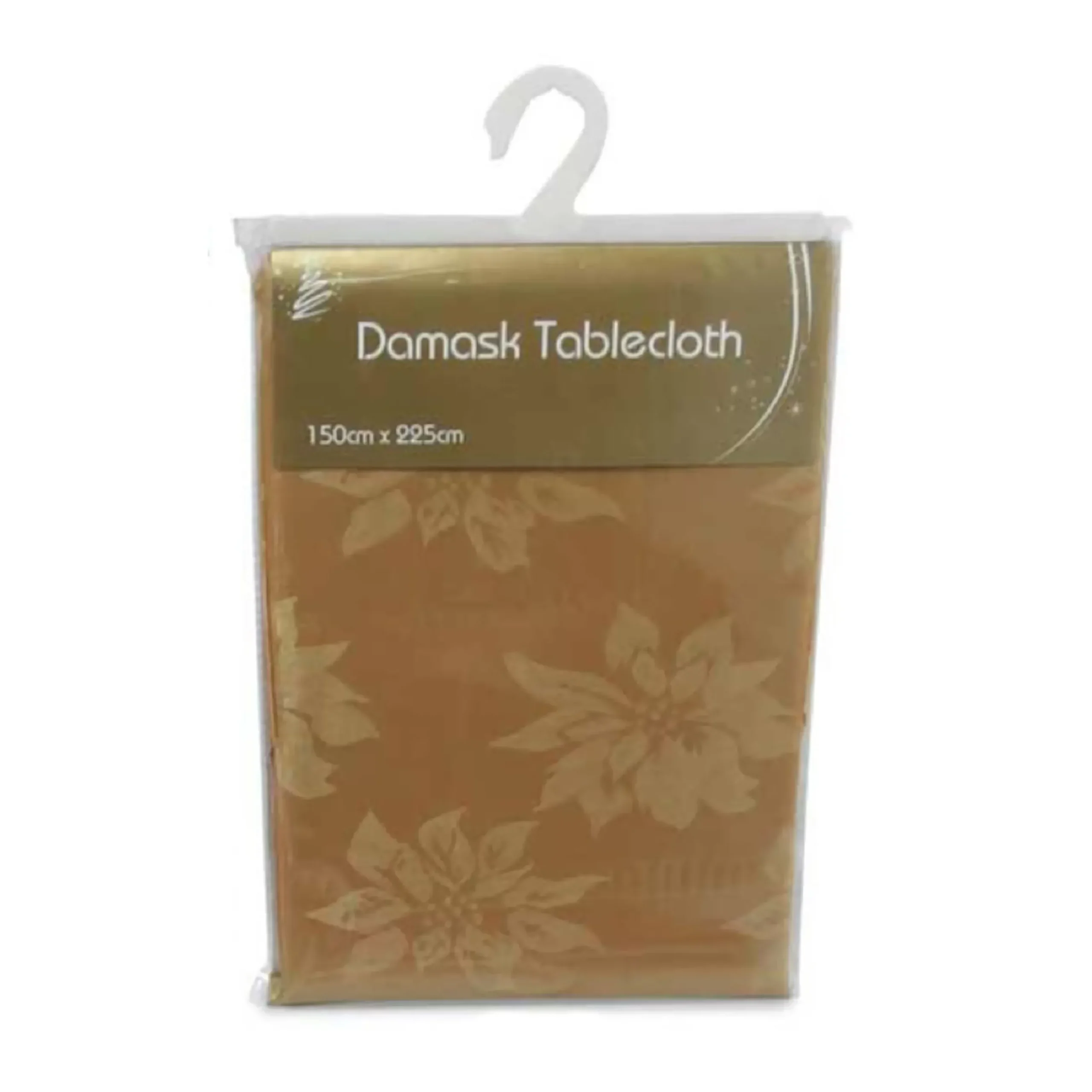 This Is A Lovely Damask Tablecloth (100% Polyester Made) Rectangular Size With Beautiful Christmas Flower And Leaves Print. A Rich, Heavy Silk Or Linen Fabric With A Pattern Woven Into It, Used For Table Linen And Upholstery.