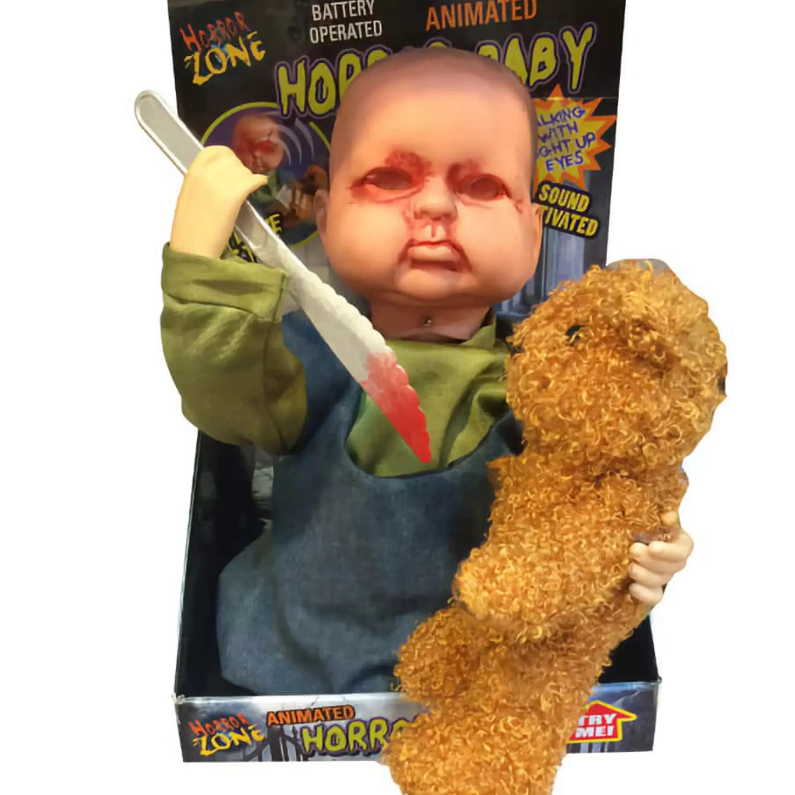 Sound Activated Horror Baby Laughs With Stabbing Movement.