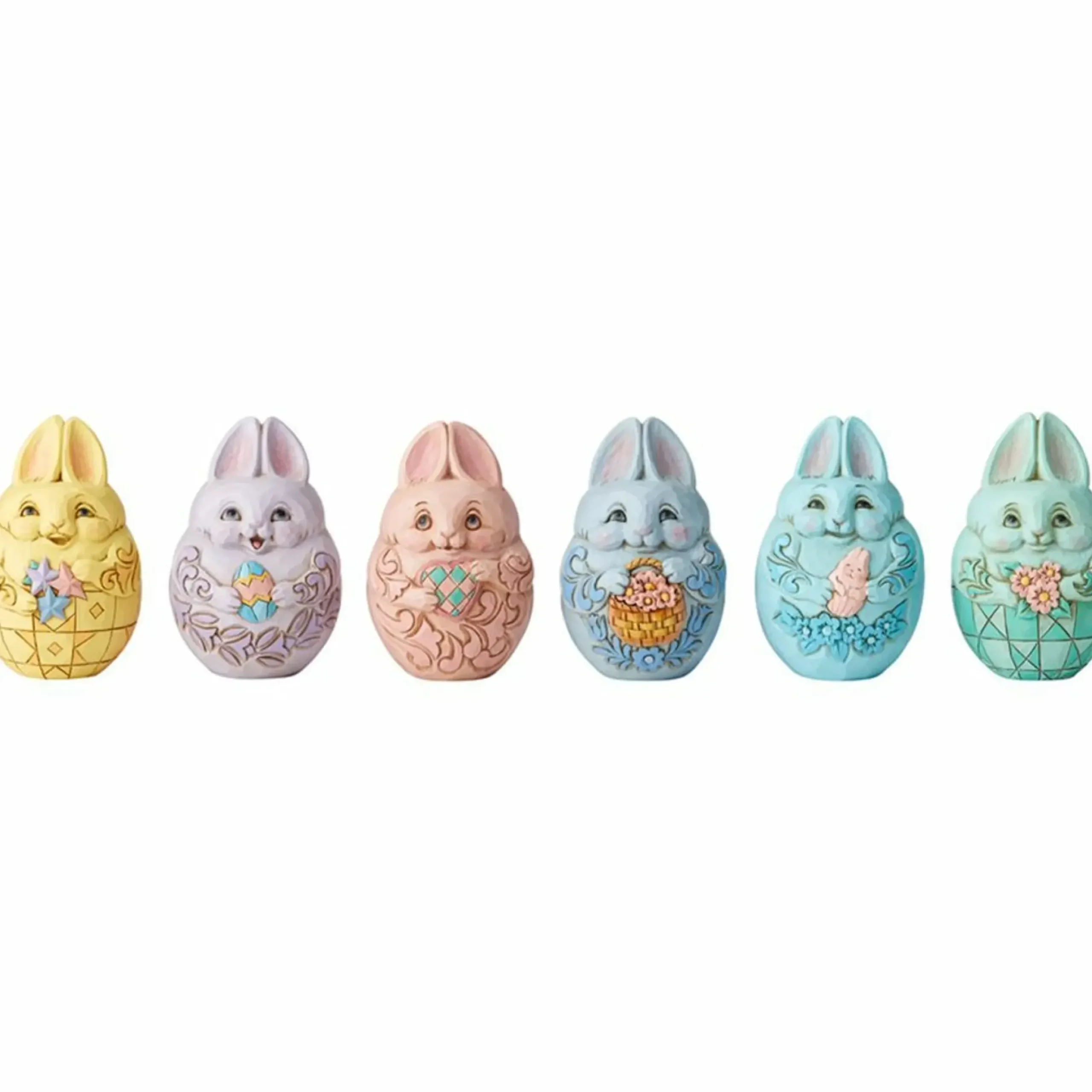 This Spring Your Egg Carton Has Never Been Cuter! The Individually Crafted And Collectible Painted Jim Shore Eggs Are In The Shape Of An Array Of Bunnies, Each Bearing Their Own Festive Gift.