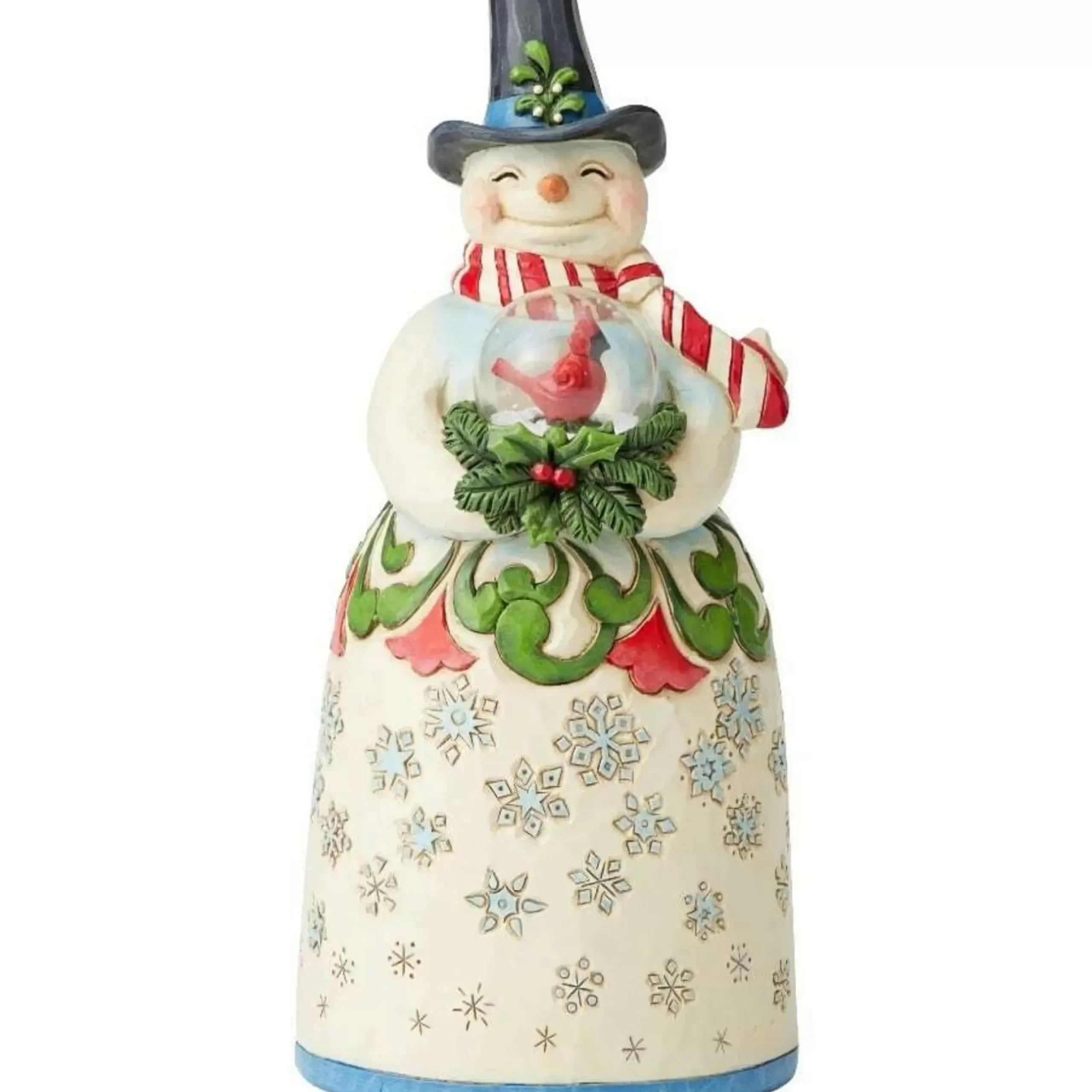 Add Charm To Your Festive Display With This Snowman Figurine Featuring Jim Shore’s Signature Folk Art Styling. With A Colourful Cardinal Globe In His Hands, This Smiling Snowman Adds A Cheerful Touch Of Wintry Fun To Any Room And Makes A Wonderful Christmas Gift For A Collector. A Whimsical Blend Of Snowflakes And Floral Designs Decorate The Handcrafted, Hand Painted Piece