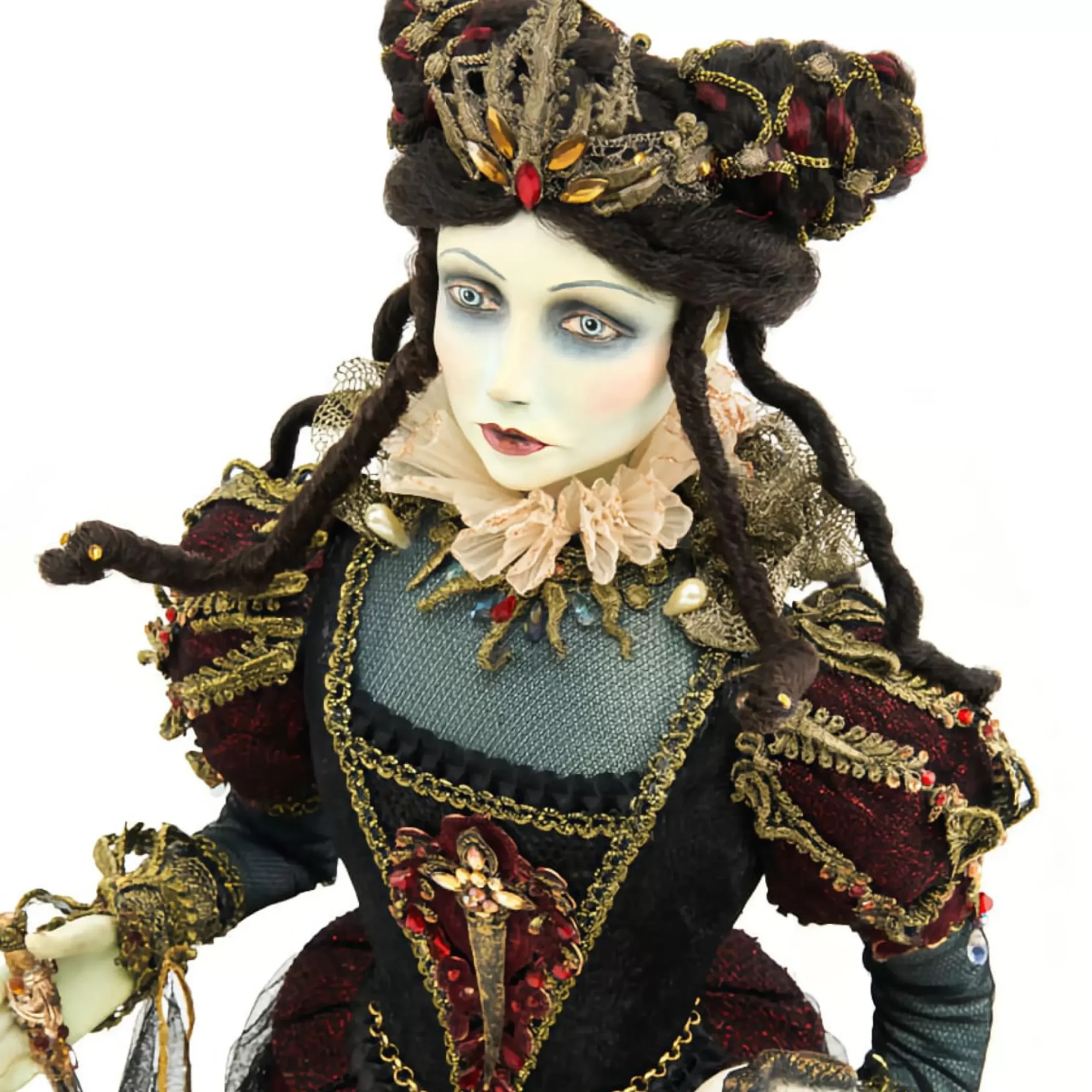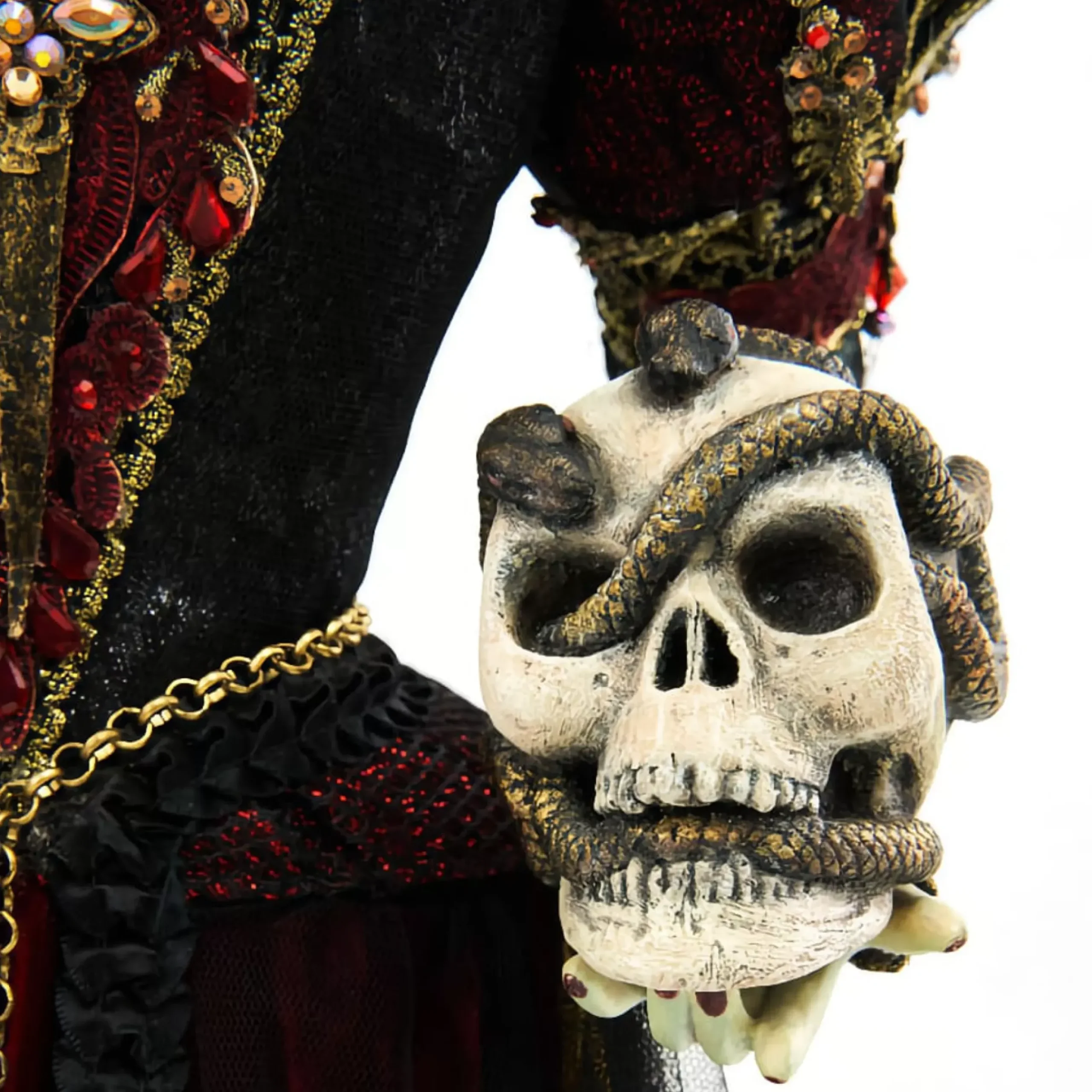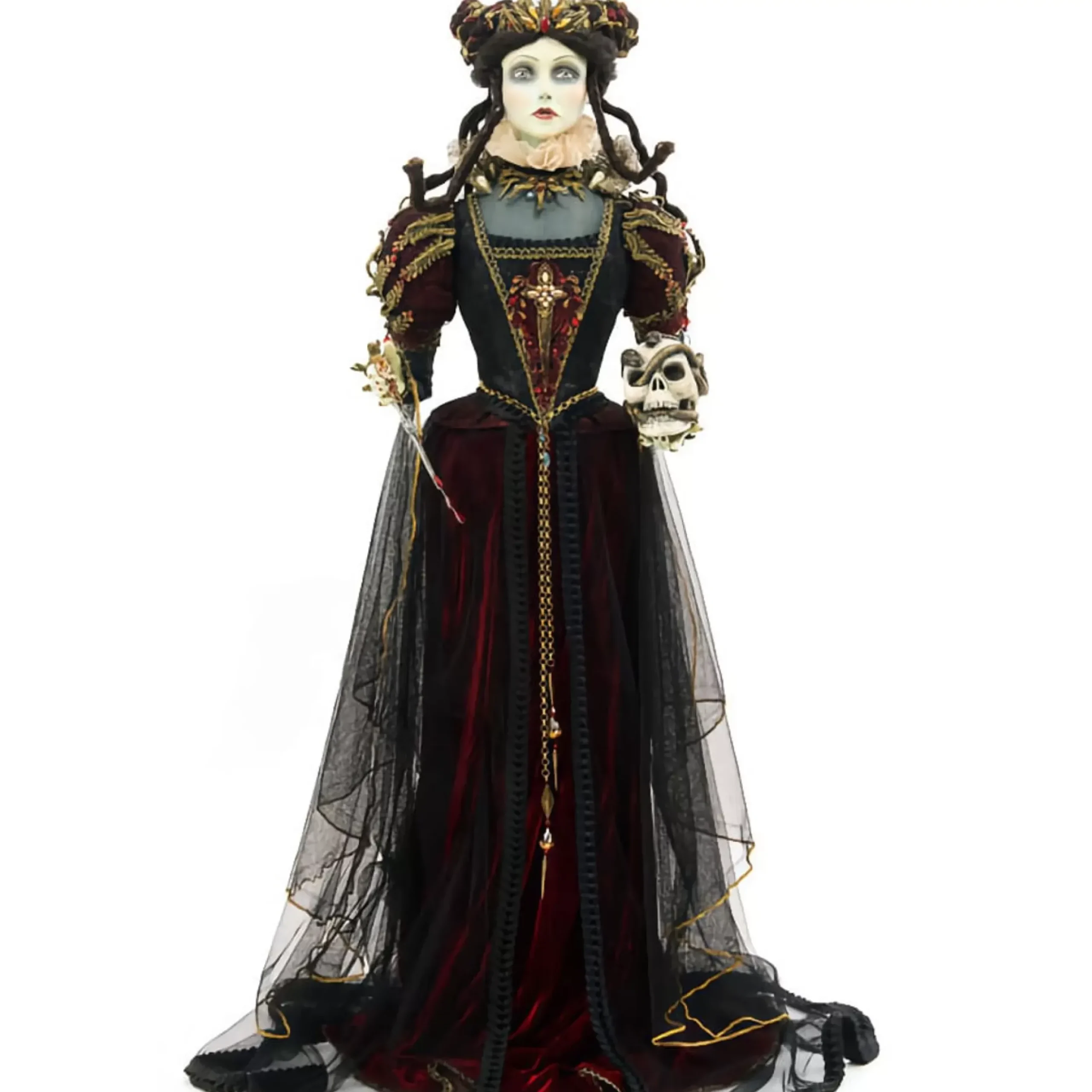 Stunning And Frightful, Lady Macdeath By Katherine’s Collection Is Sure To Haunt Your Halloween Displays For Many Years To Come. With Her Pale Skin And Crown On Her Head, She Stands Out Against The Beautiful Dress She Wears For This Dark Season. The Perfect Way To Spice Up Your Halloween Gathering.