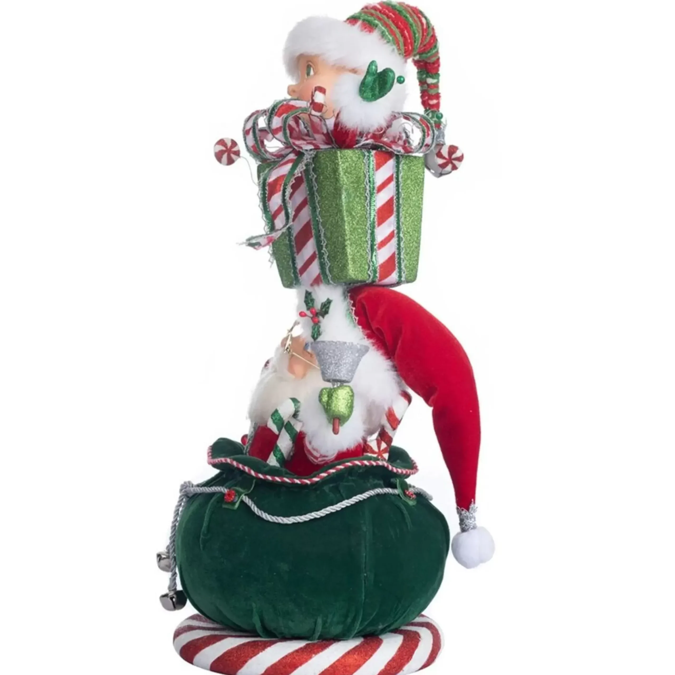 This Funny Christmas Figurine Depicts A Delightful Elf And Santa Encounter. The Elf Pops Out Of A Gift, As Santa Pops Out Of His Santa Sack. Sweet Candy-Inspired Decor Would Be A Terrific Addition To Your Home.