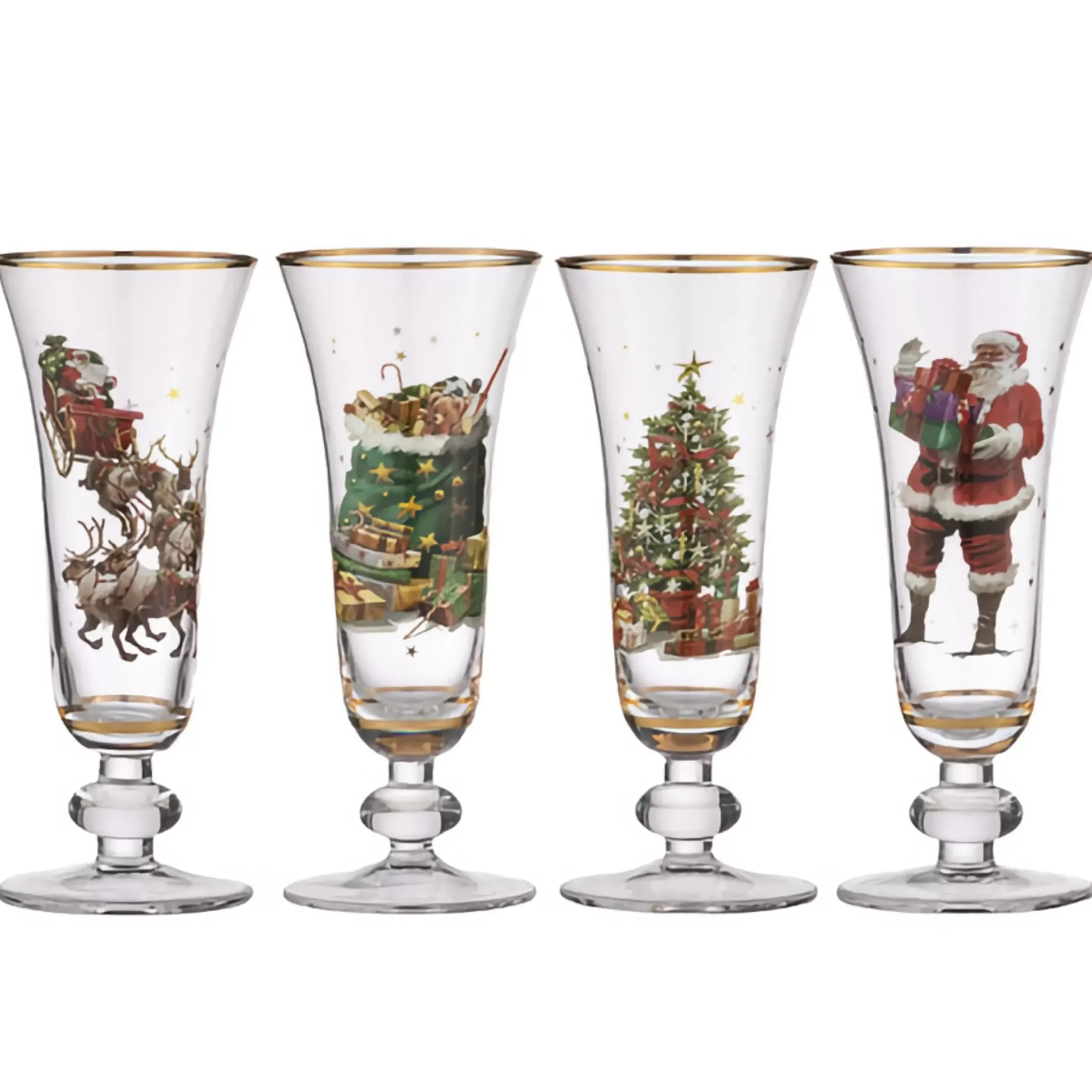 Ladelle Ashdene Spirit Of Christmas Glass Champagne Flutes (Set Of 4)