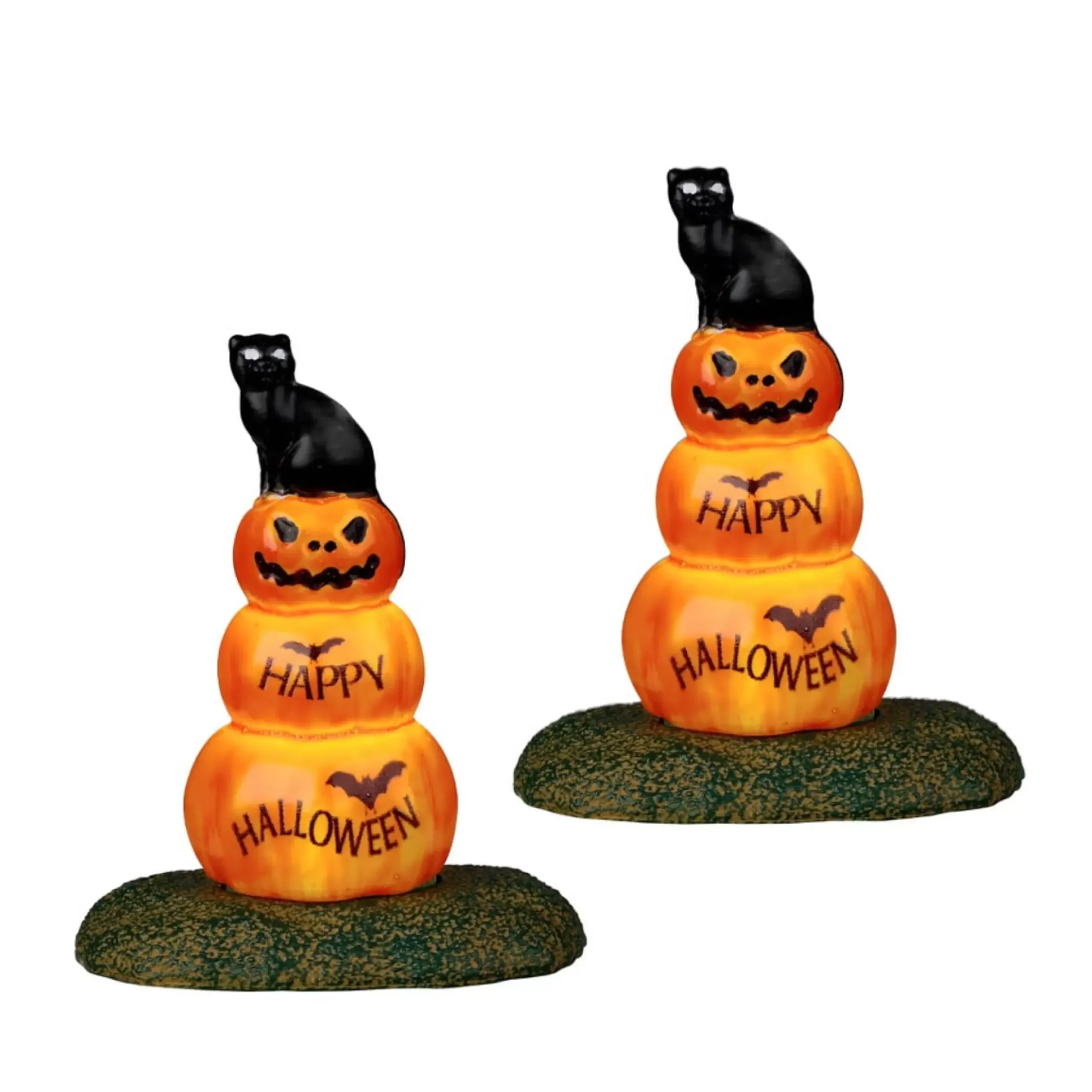 Just When You Think You’Ve Seen All The Halloween Decorations There Are, A New Combination Springs Up! Pumpkins And Black Cats Are Two Iconic Symbols Of Spooky Season, So It Makes Sense That Together They Make For A Great Figurine! Three Pumpkins Are Carefully Stacked On Top Of One Another, Though The Look In The Cat’s Eyes Might Suggest That Magic Is At Play! They Even Spell Out Happy Halloween To Add To The Spooky Town Festivities.