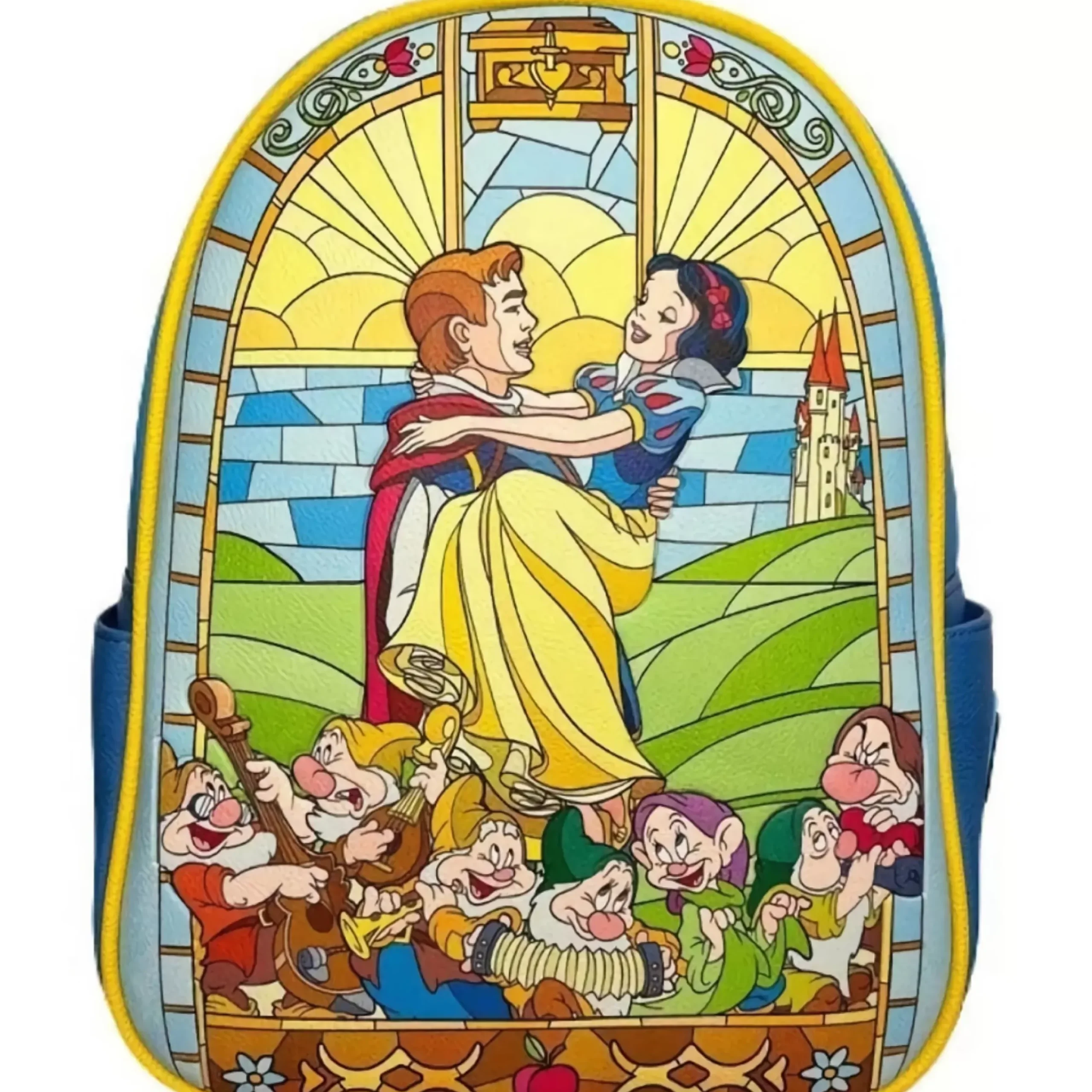 Bring A Touch Of Disney Magic Into Your World With This Stunning Backpack. Snow White And The Seven Dwarfs, The Story Of A Beautiful Princess Who Must Flee From Her Vain And Murderous Stepmother. Her Prince Awakens Her With Love’s First Kiss And Carries Her Away To His Castle To Begin Their Happily Ever After. With Loungefly’s Stain Glass Line, You Can Carry The Happily Ever After Of A Disney Princess Wherever You Go! This Enchanting Backpack Shows Snow White In The Prince’s Arms Celebrating Her Awakening, Surrounded By The Seven Dwarfs