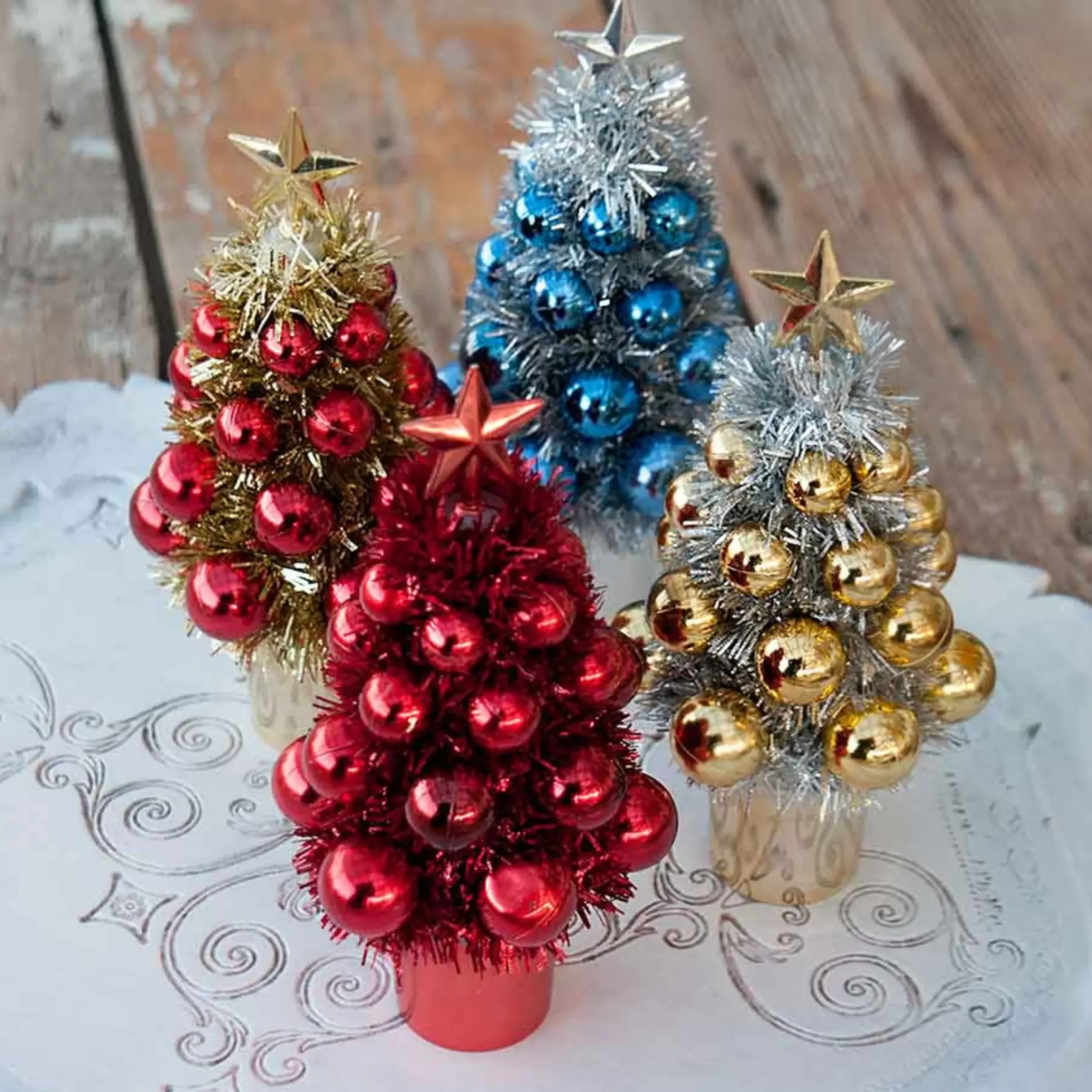 These Mini Tinsel Trees Are Decorated With Oversized Baubles Are Perfect To Liven Up Their Surroundings. Place Them On Your Mantle, Desk, Office Or Table Centrepiece.