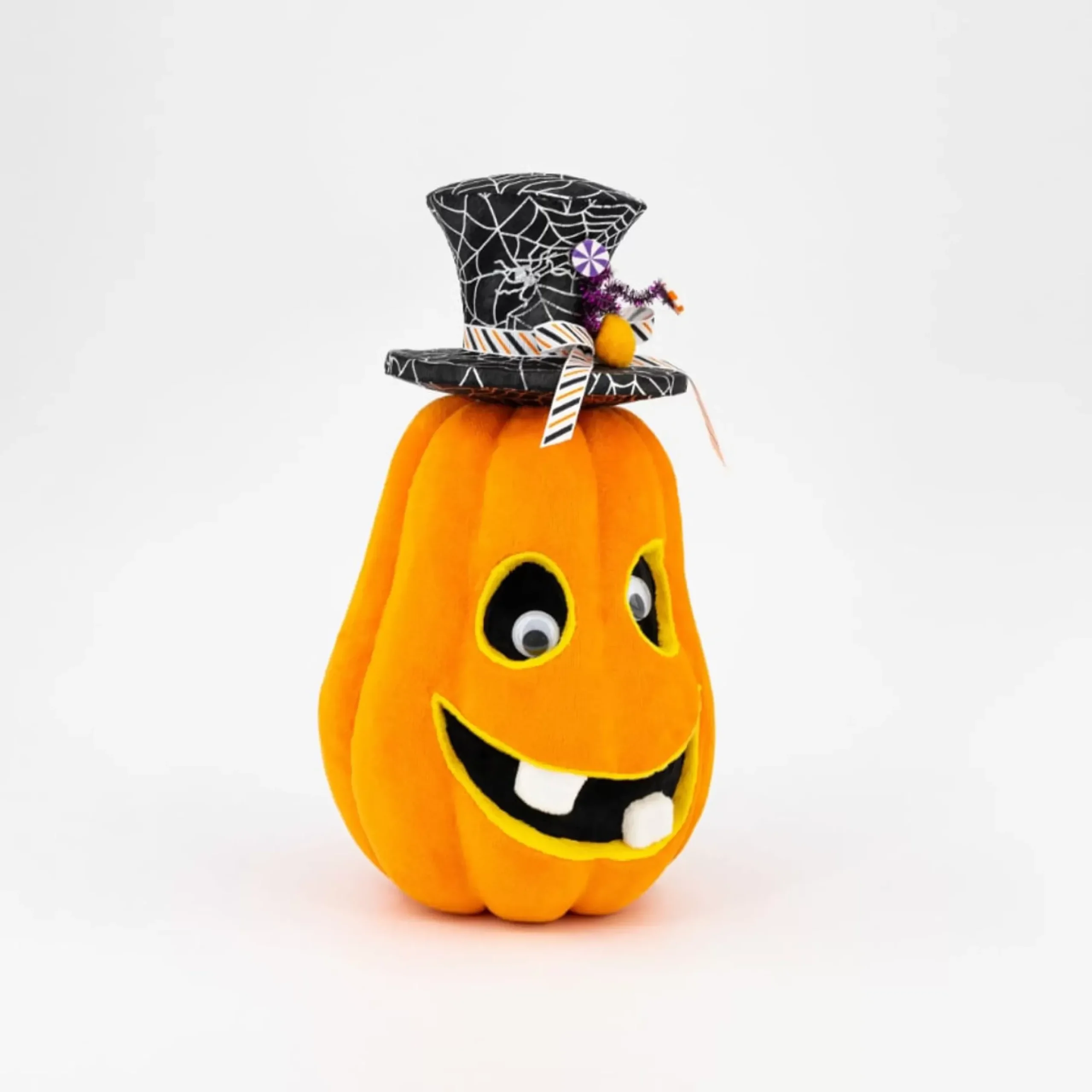 Orange Pumpkin Face With Web Top Hat