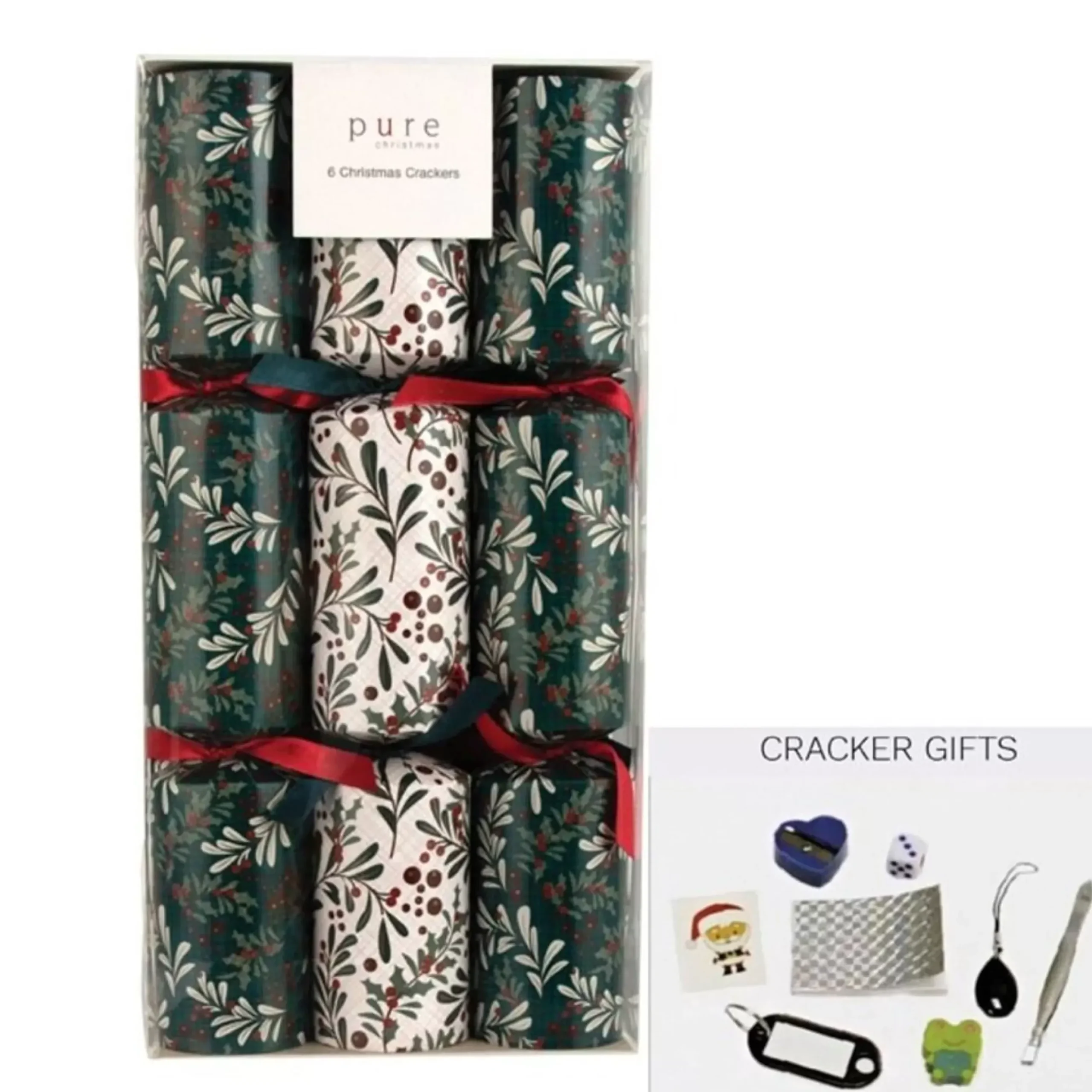 Premium Green White Holly Christmas Crackers (Pack Of 6)