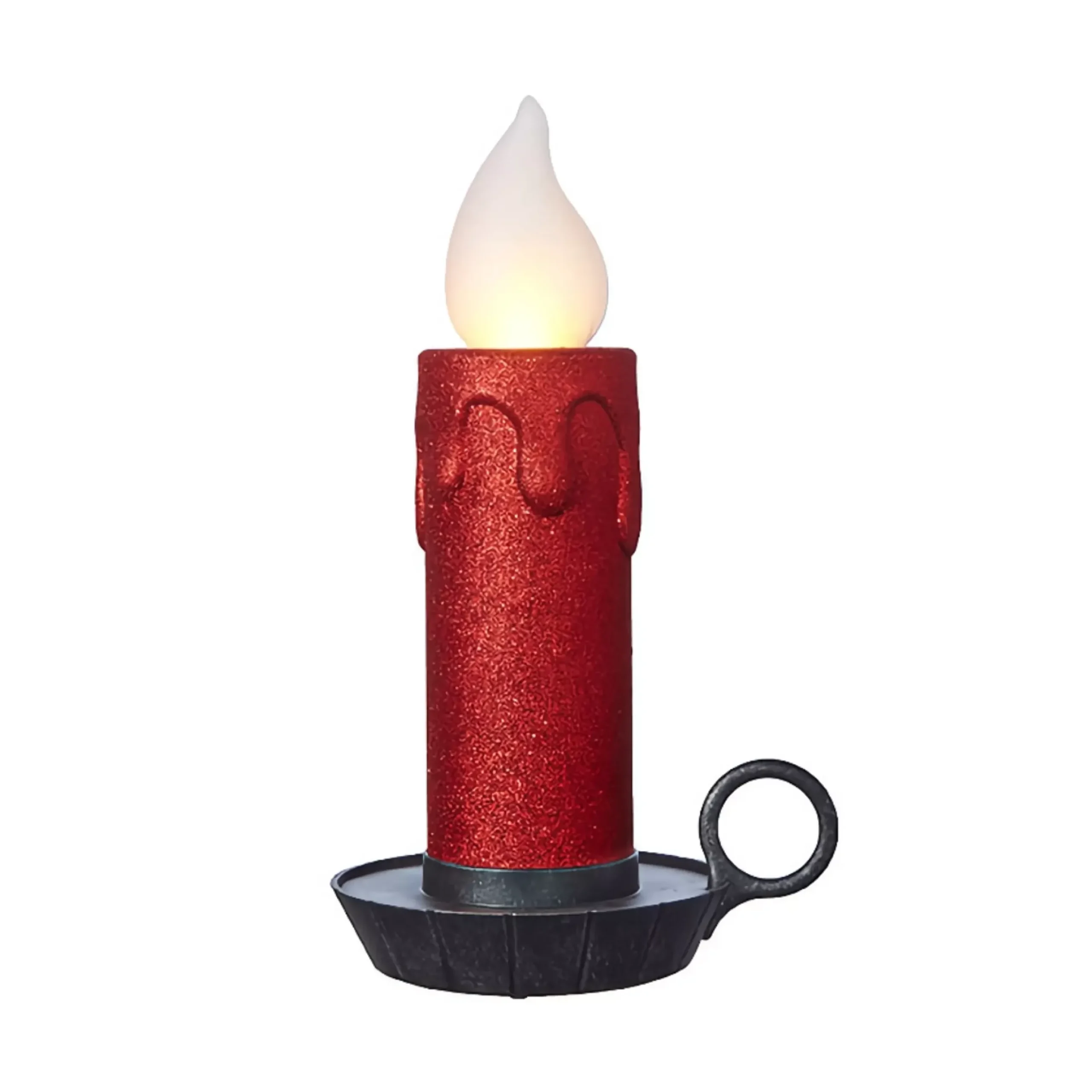 An Old Fashioned Sparkly Candle Covered In Bright Red Glitter And A Lighted Flame On The Top. Brilliant To Place Next To Your Christmas Tree, Table Top Or Mantle