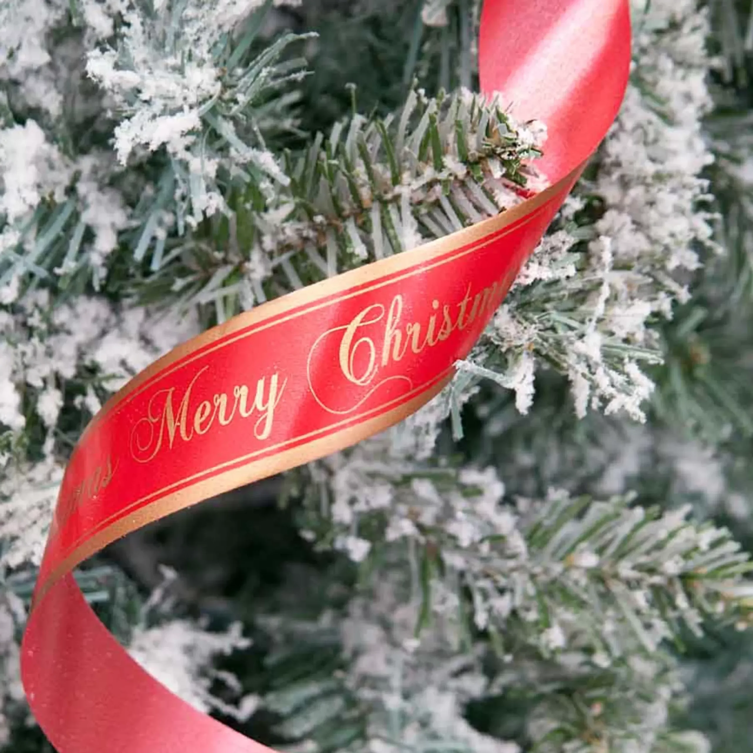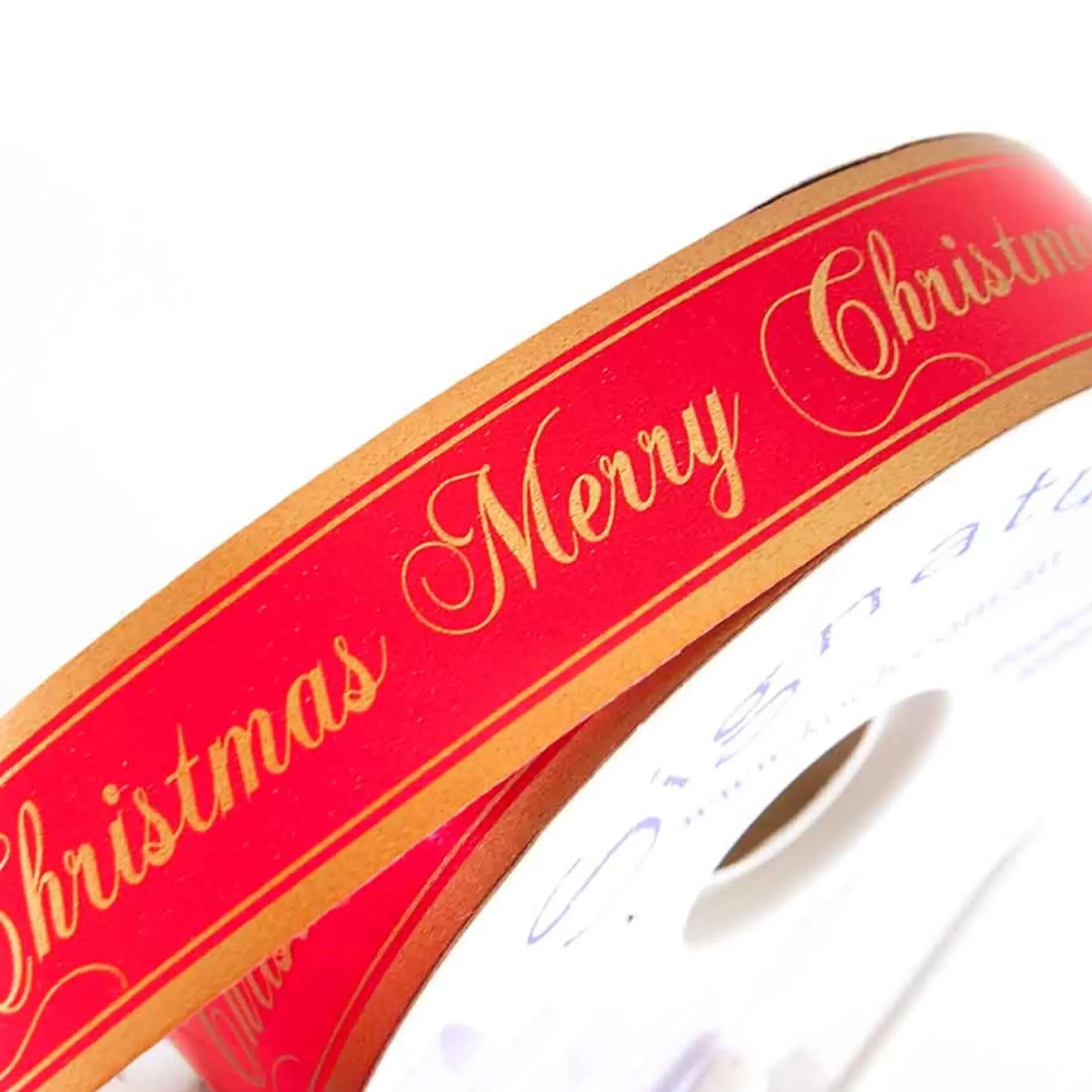 Red Gold Satin Merry Christmas Ribbon