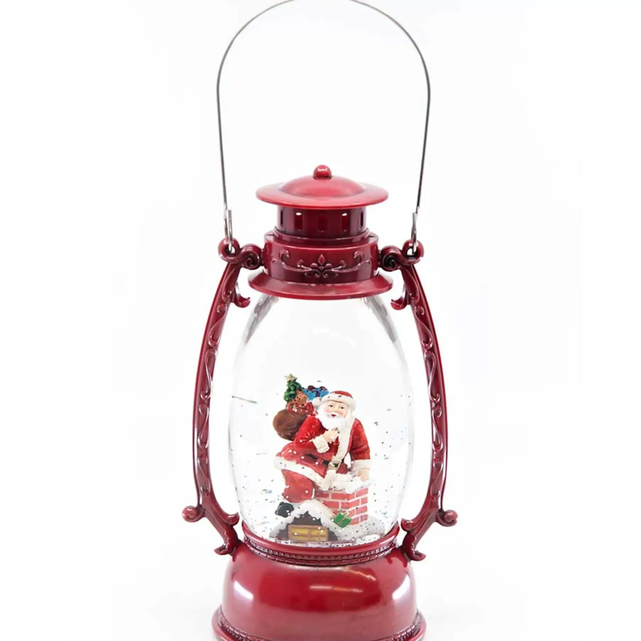 This Lantern Features Our Favourite Santa Ready To Climb Down The Chimney To Deliver Presents. Bring Sparkly Joy Into Your Home Or Festive Interior At Christmas. When Turned On A Warm Led Light Shines Down On The Figures And Continuously Swirling Glitter Gives The Water Lantern A Whimsical Look.