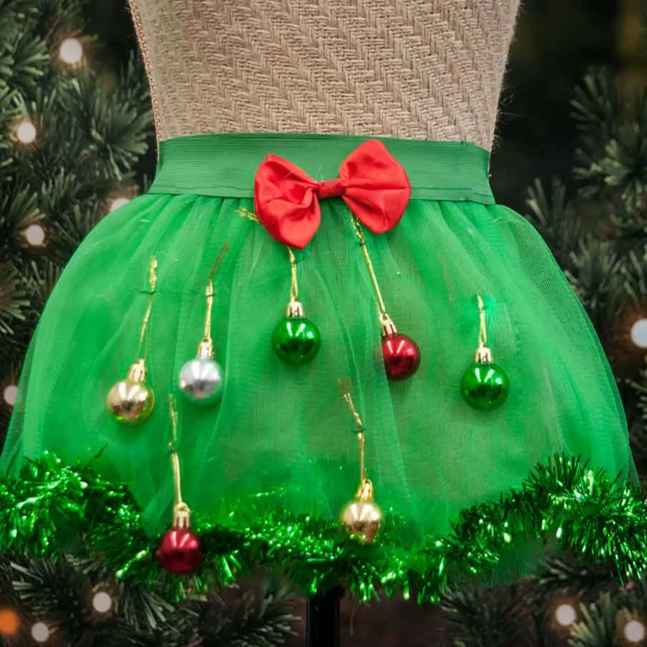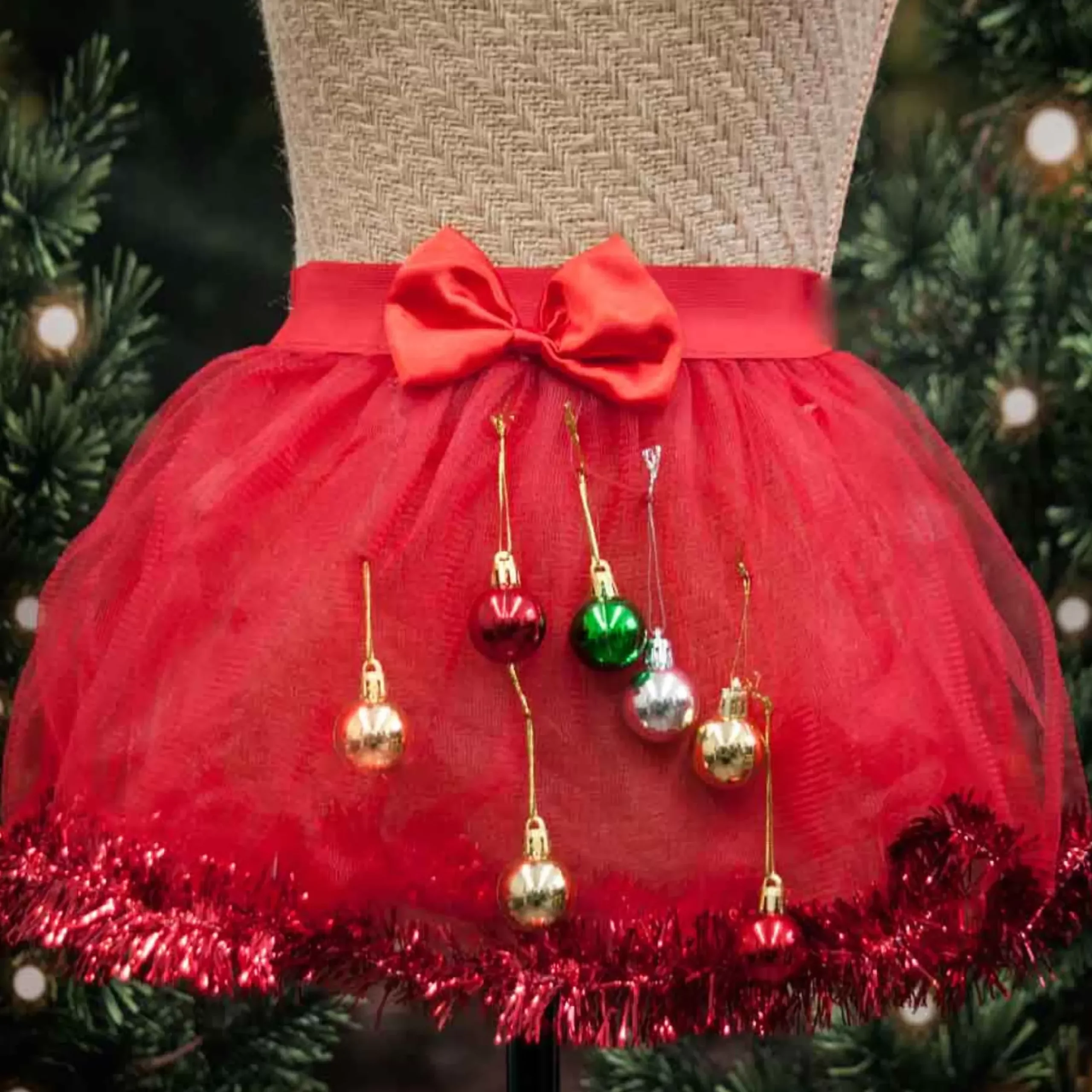 Styles: Red Skirt W Tinsel Hem, Green Skirt W Tinsel Hem, Red Skirt W Bows And Tinsel Waist