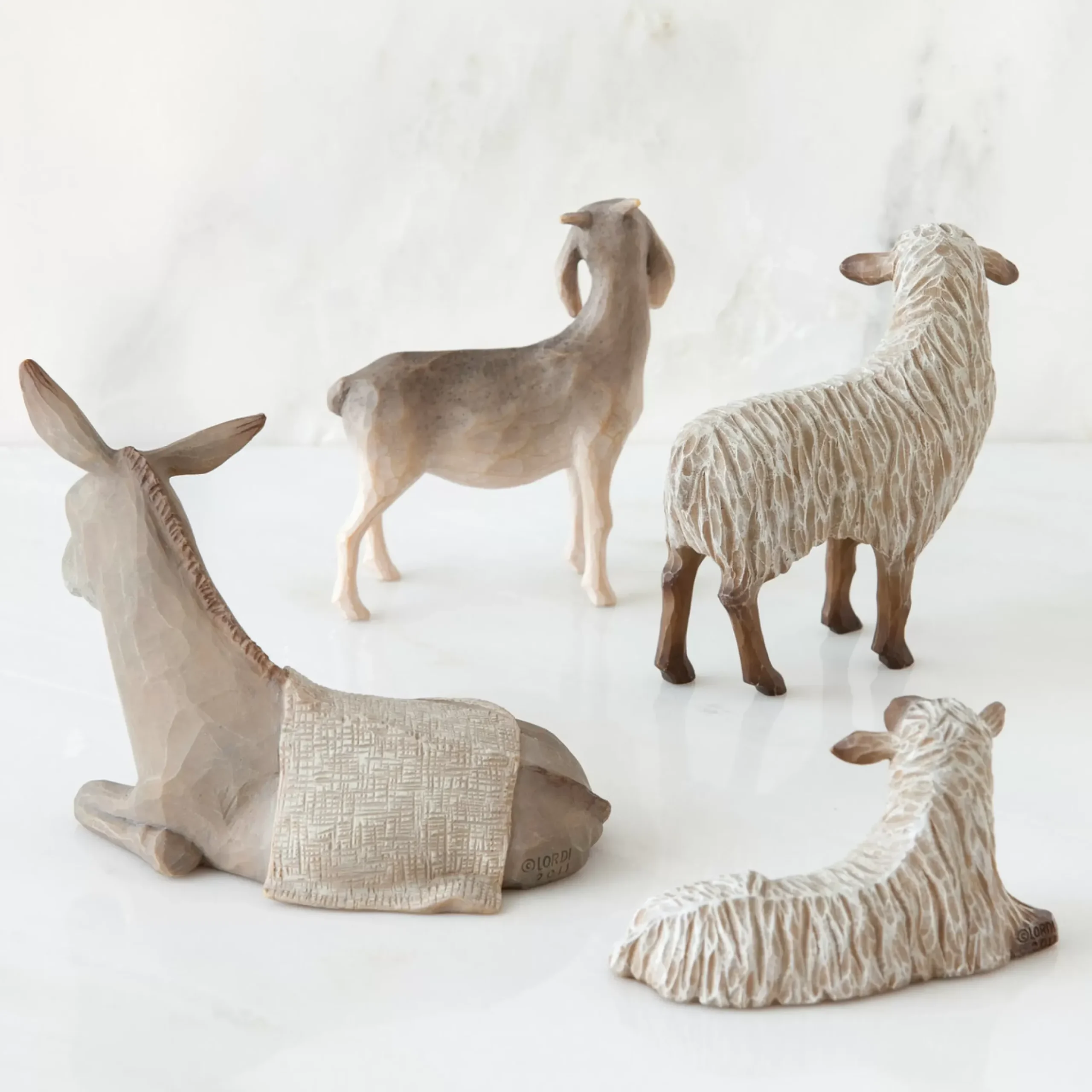 This Four-Piece Set Of Animals Was Designed To Specifically Fit The Small, Intimate Scale Of The Holy Family. “The Sheltering Animals Are Proportional In Scale To The Holy Family… Smaller Versions Of Other Animals I’Ve Carved, With A Few Little Tweaks In The Details. I Like That The Gestures Of Their Heads And Ears Express Watchful Attentiveness. My Favorite Is The Goat – He Shows His Personality In His Stance!” – Susan Lordi